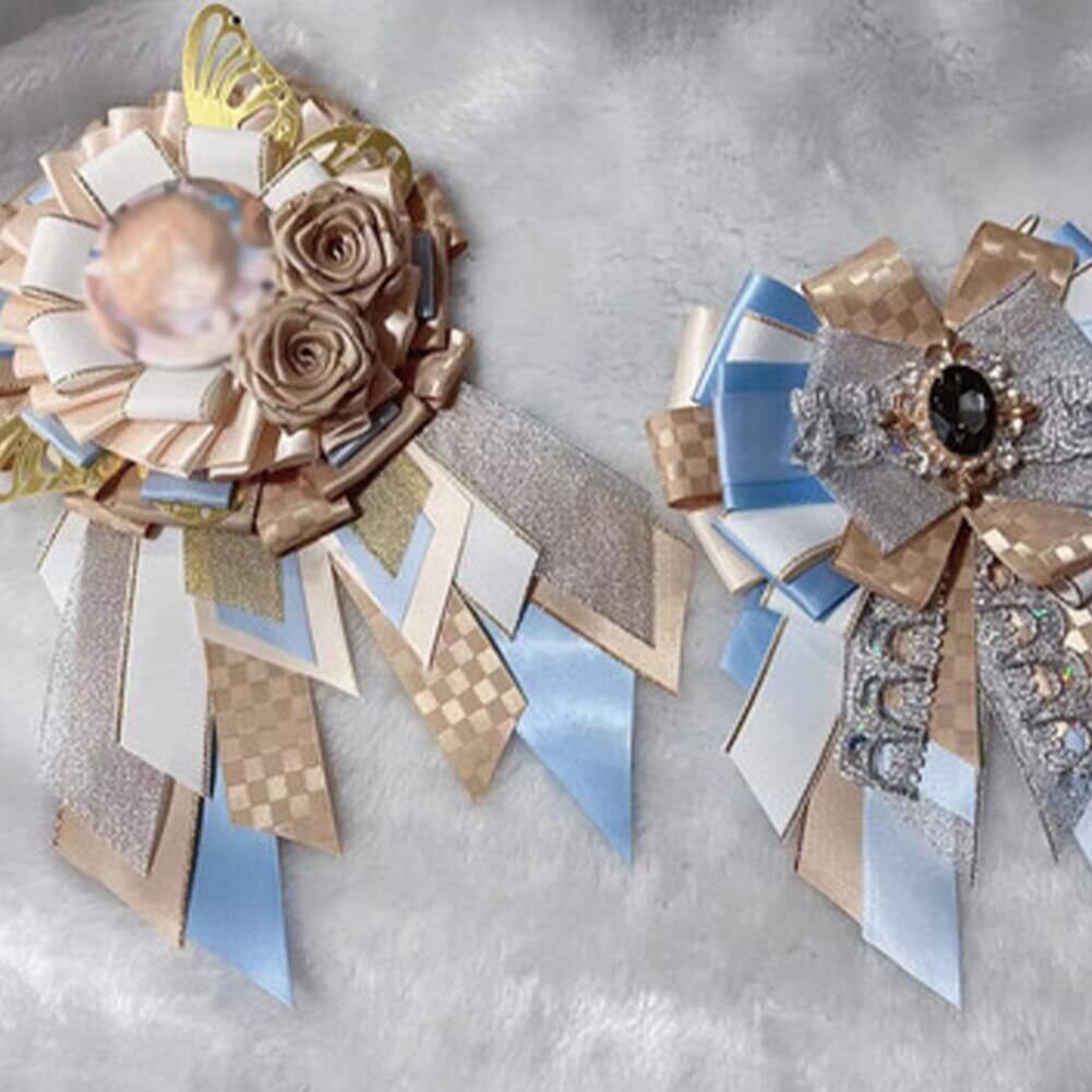 外観:手作りレトロロリータ系の缶バッジ用ロゼット、綺麗な飾り付きます。