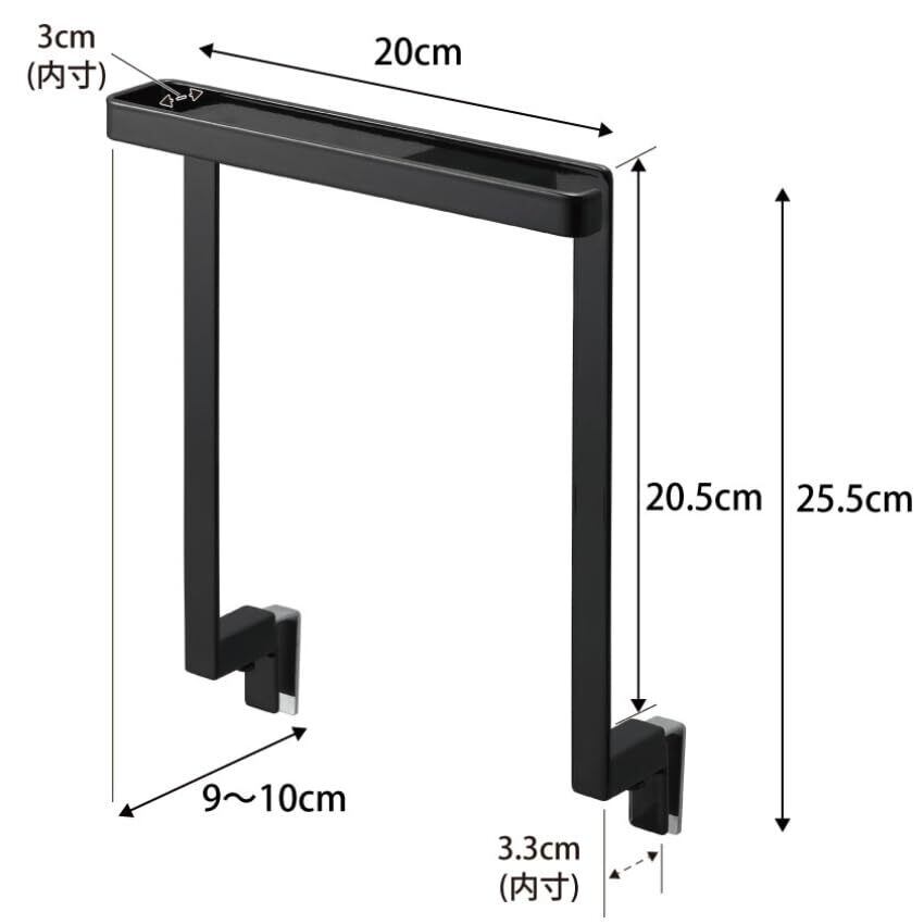 商品サイズ:約W20×D9~10×H25.5cm ・内寸:タオル収納部:約W19.5×D3cm 設置時のタオル収納部の高さ:約20.5cm