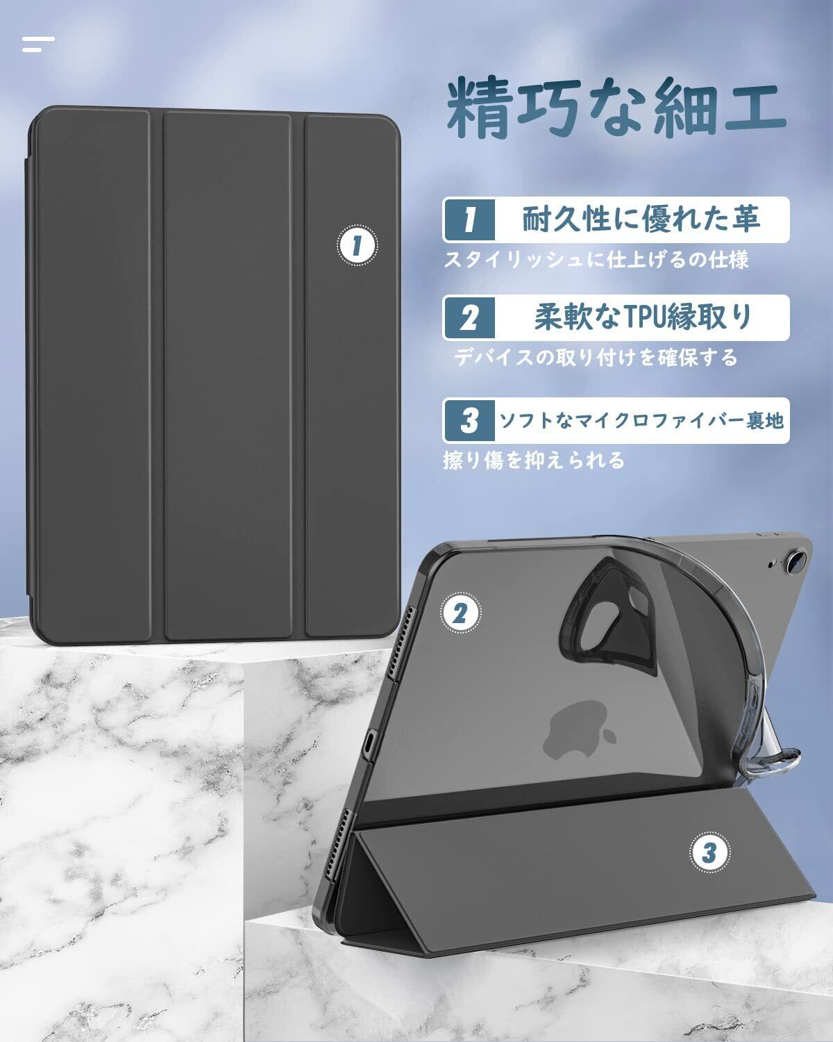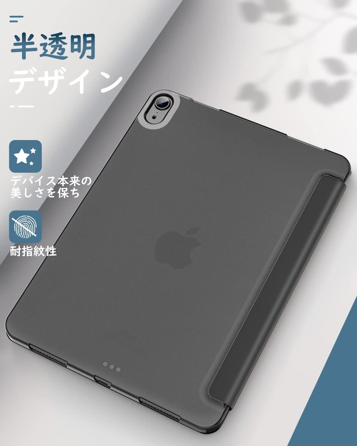 iPad Air 11インチ 第7世代/第6世代 ケース 2025/2024 Dadanism iPad Air 11 M3/M2 2025年新モデル iPad Air 5 Air 4 10.9インチ カバー Air 11インチ/第5世代 第4世代 ケース オートスリープ PencilPro/第2世代ワイヤレス充電 PU+TPU 三つ折り スタンドケース 半透明 ソフト ダークグレー