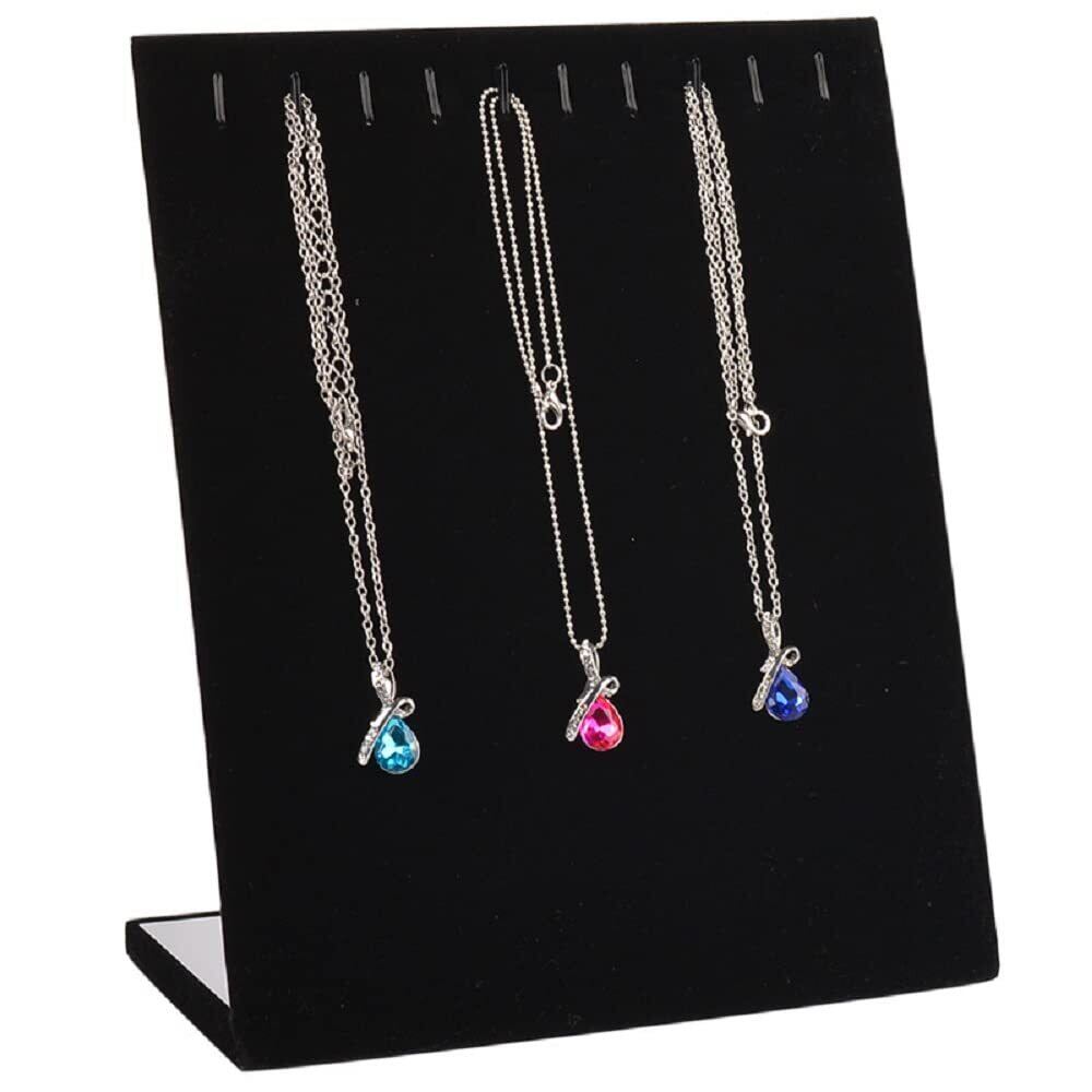 【特価セール】himsyuden ネックレスディスプレイ 11本用 ベロア調 ジュエリー トレイ ネックレススタンド アクセサリースタンド アクセサリー展示 収納 L型 記念日 誕生日 バレンタイン ギフト ネックレス整理 (ブラック) | allstore5