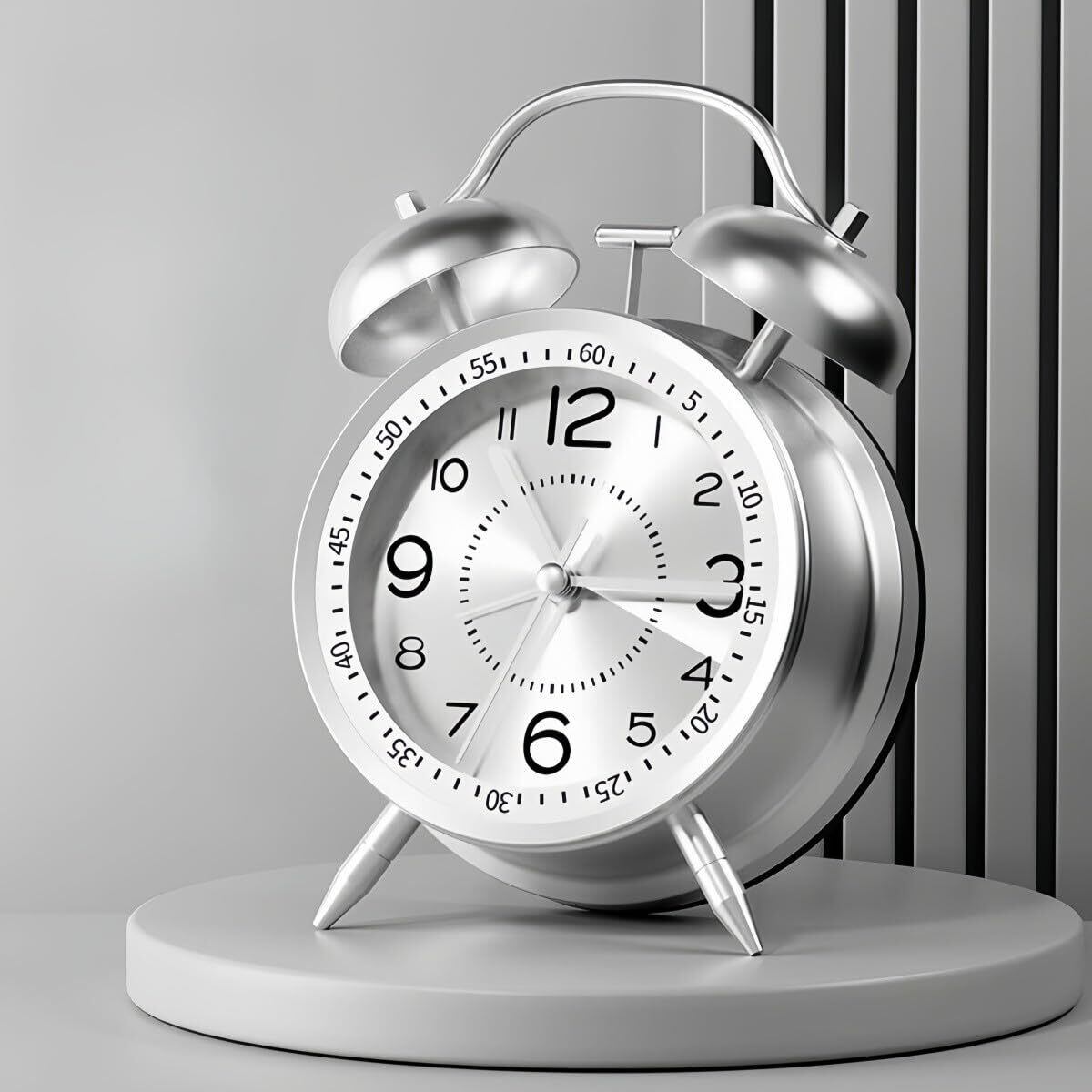 【在庫セール】YYDS 目覚まし時計 子供 大音量 置き時計 アナログ 振動 オシャレ 可愛い ベル うるさい おしゃれ 標準時計 ライト機能 おしゃれな標準時計 さわやかな着信音 絶対起きれる目覚まし時計 重く眠る方向け 静音機能 振動機能 連続秒針 文字盤 (シルバー)