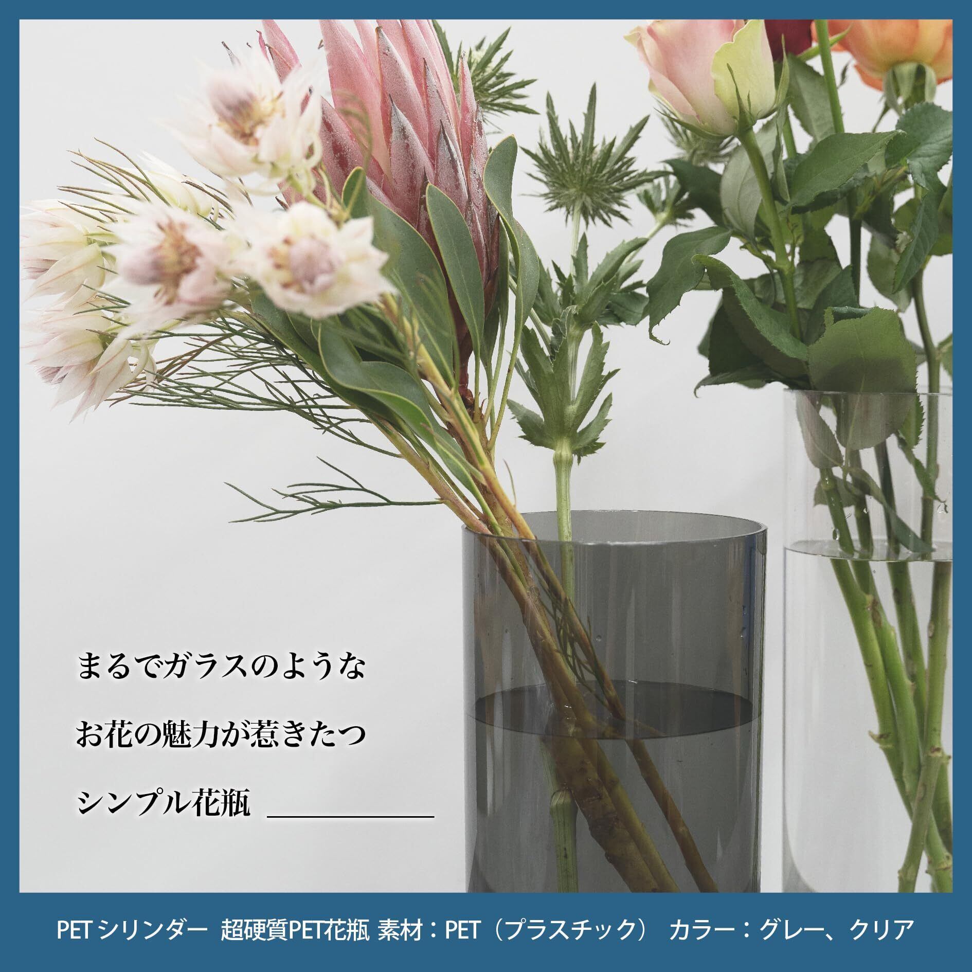 ポピー名古屋 フラワーベース PETシリンダー 直径10cmシリーズ 高さ約30cm 円柱 割れない 花器 cool-003 グレー