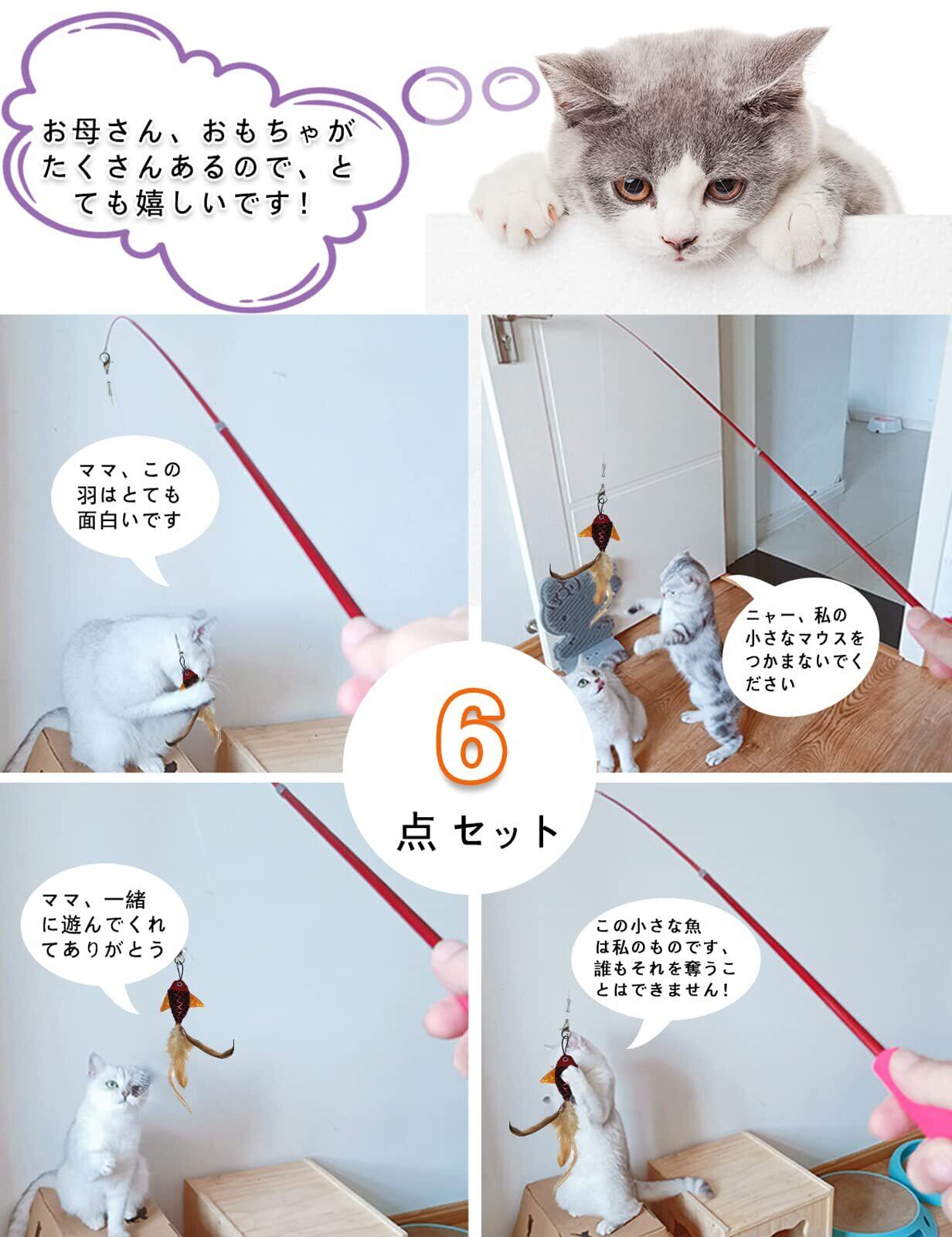 ❈【6点セット】猫のおもちゃ:2本伸縮できる釣り竿、1個疑似魚、3本の釣り糸。全てのおもちゃに天然羽毛、無毒性の塗料を使用しています!かわいい猫と遊ぶ-とても幸せで幸せなことです!