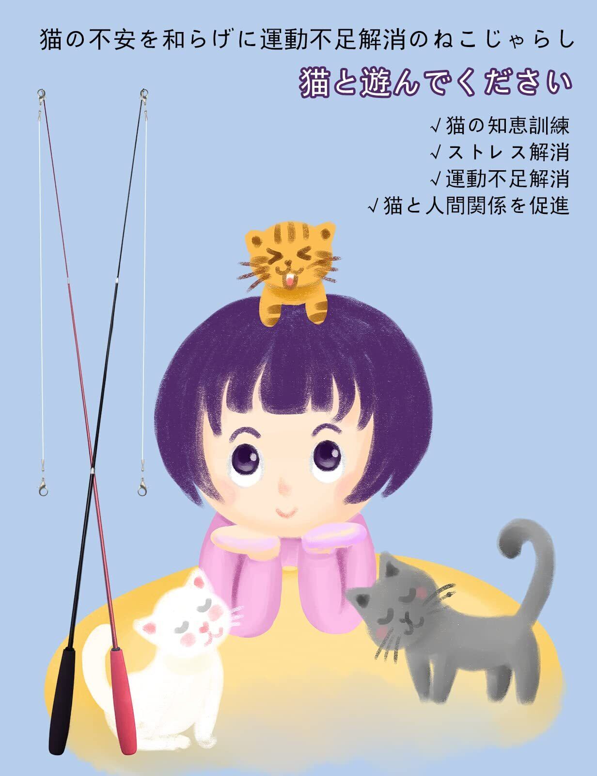 ✿【簡単に操作】1. 竿を連結し、ねこじゃらしの先端におもちゃを取り付けます。2、かるく振るだけで、おもちゃがくるくる回りながら飛び回るり、猫さんの運動不足解消やストレス解消に役立ちます。いろんな場合にも飼い主さんが動かなくても猫ちゃんがしっかり遊べます。