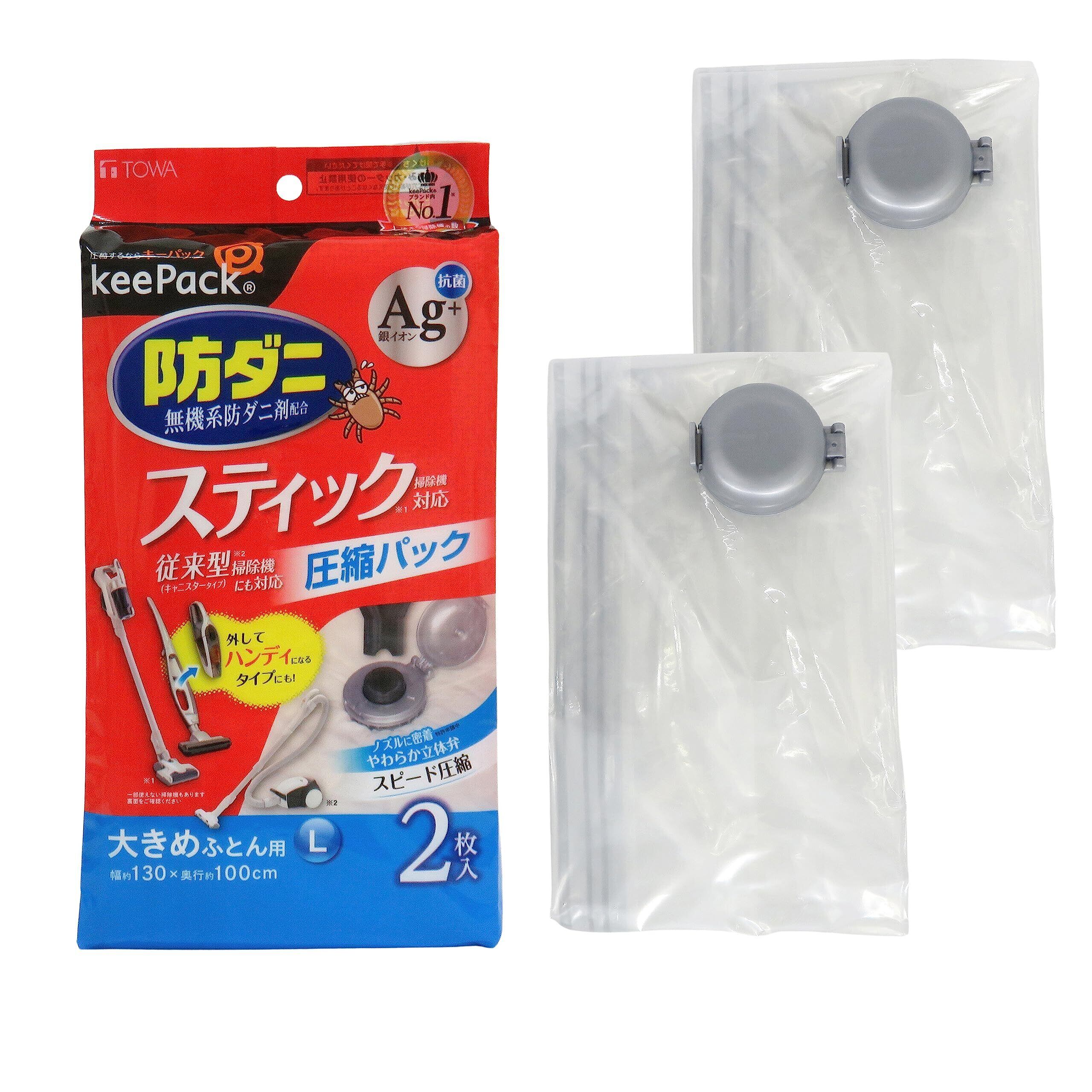 【在庫セール】東和産業 布団圧縮袋 スティック掃除機対応 防ダニ 銀抗菌 130×100cm 2枚 L 特大 布団収納 大きいサイズ 掃除機対応 繰り返し使える 引越しダイソン
