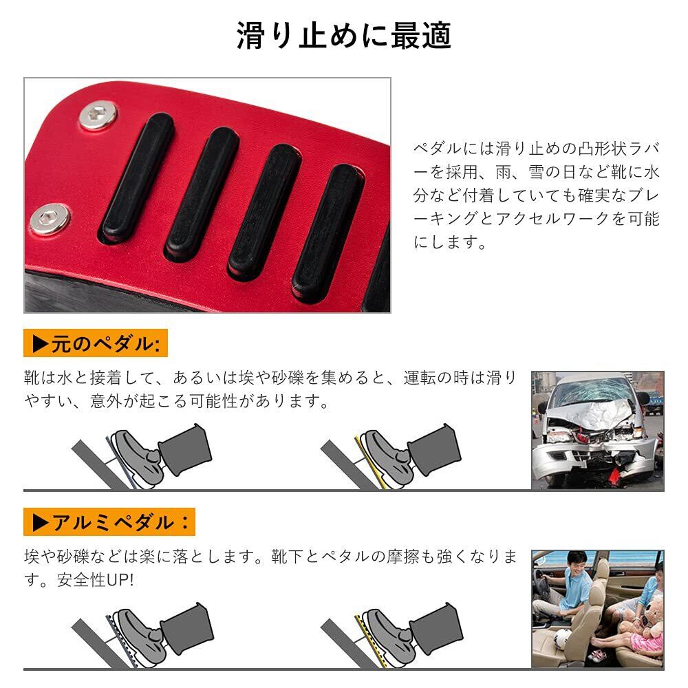 【滑り止めに最適】アルミペダルには滑り止めの凸形状ラバーを採用しており、雨、雪の日など靴に水分など付着していても確実なブレーキングとアクセルワークを可能にします。滑る心配をすることはありません。どんなん時でもしっかりとグリップ感を保持し、足元の操作性を向上させます。安全性UP、運転性UP。