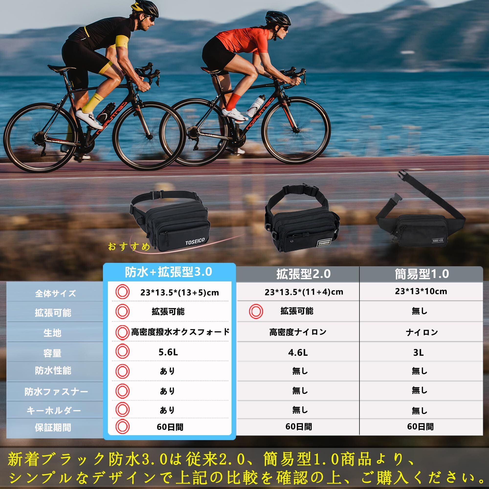 【5WAY拡張可能】TOSEICO防撥水 ウエストポーチ メンズ ウエストバッグ 一眼レフ対応 多機能 ランニング ボディバッグ レディース 斜めがけ 肩掛け 大容量 腰ポーチ アウトドア/旅行/日常にマルチ活用 バイク 撮影 犬の散歩 釣り ランニング 仕事 作業 防災用 ブラック防撥水3.0