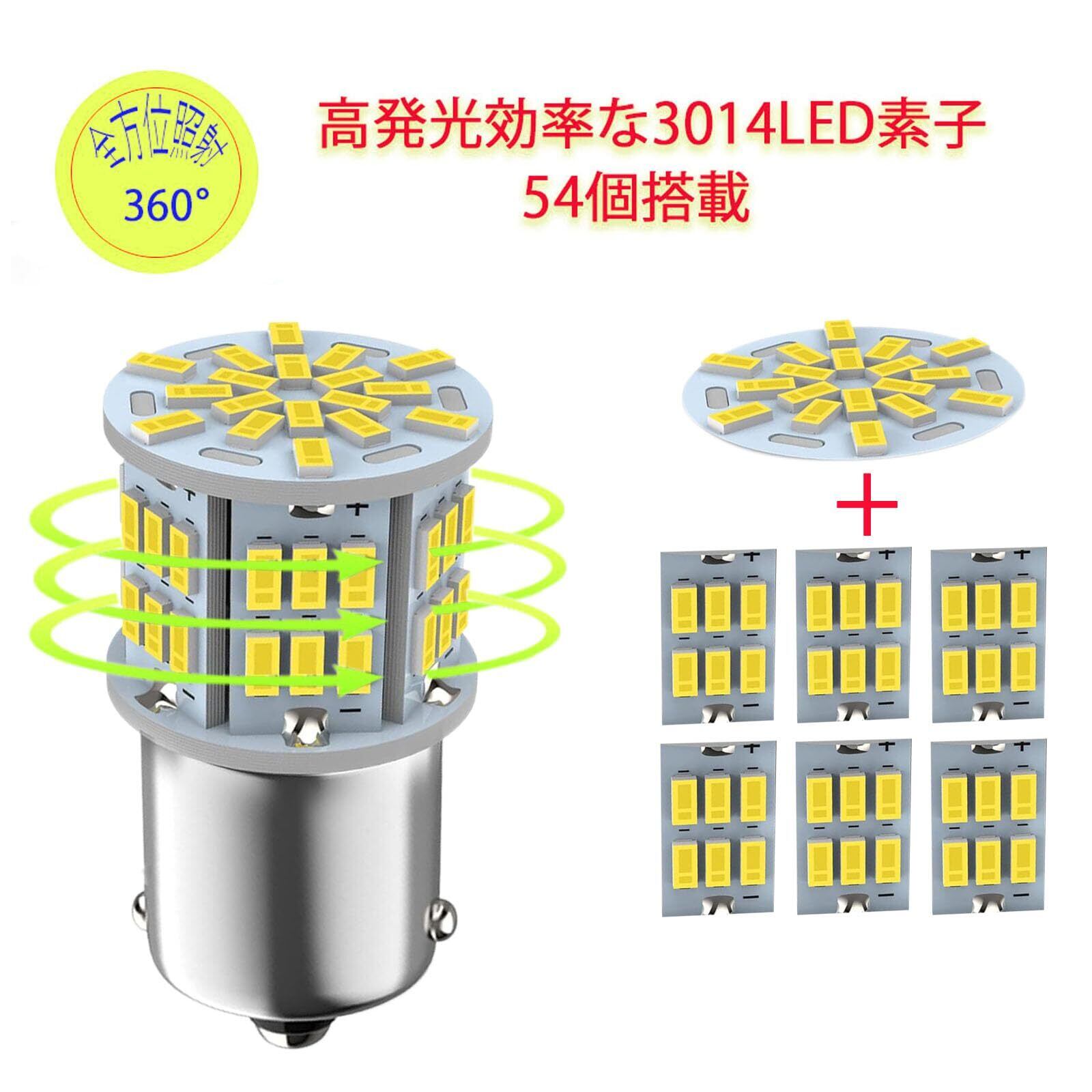 Autart 12V-24V S25 シングル球 ホワイト ピン角180度 (P21W 1156 G18 BA15S) 54連 LEDバルブ 3014SMD 汎用 車用トラック サイドマーカー ウインカー バックランプ ポジション LED ライト 2個セット
