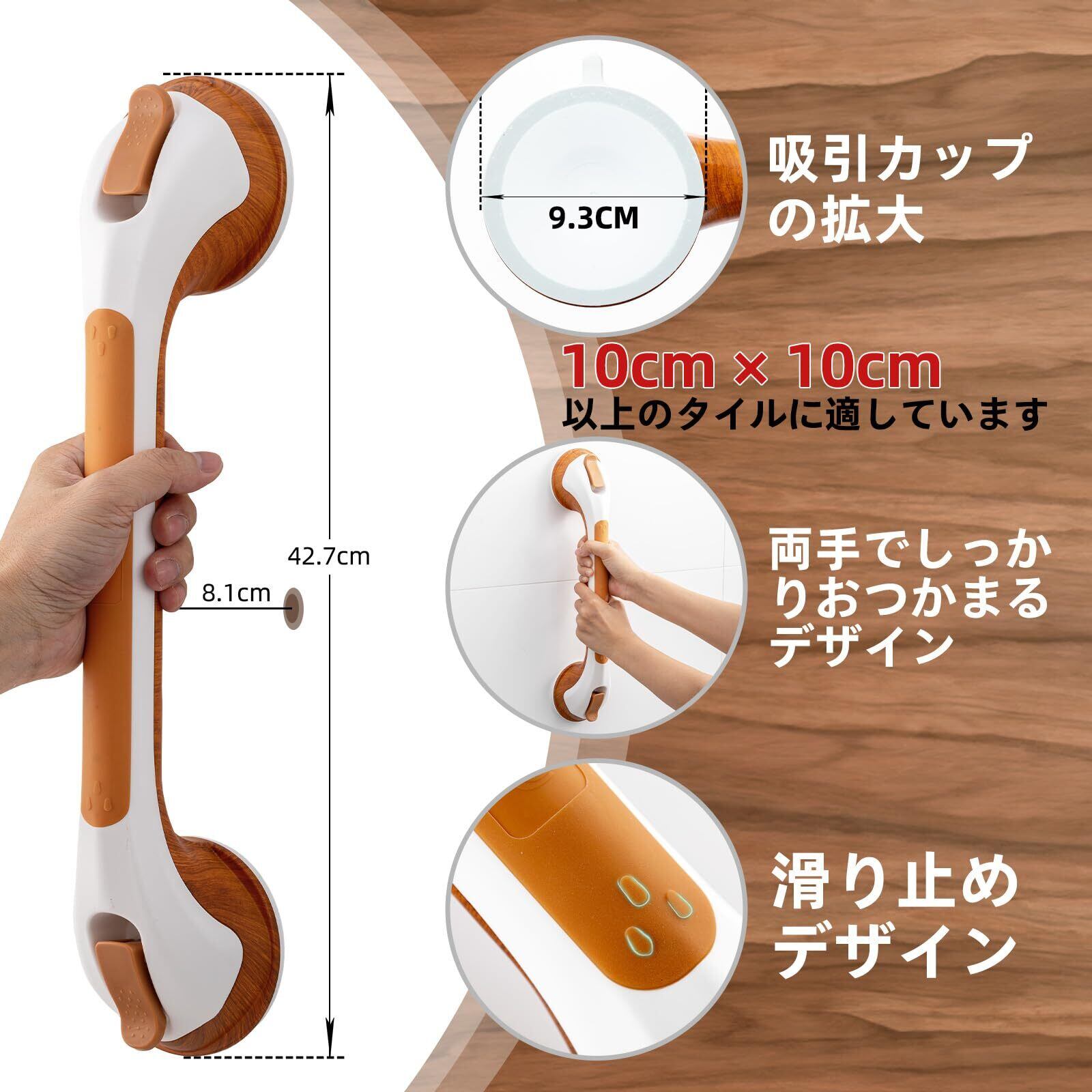 TAILI 手すり 強力吸盤 浴槽手すり 吸盤シャワー 風呂 ドアハンドル ドアノブ 取っ手 浴室 トイレ バス 玄関手摺 入浴介助 高齢者 子供 転倒 予防 敬老の日 穴あけ不要 取り付け簡単 木目色