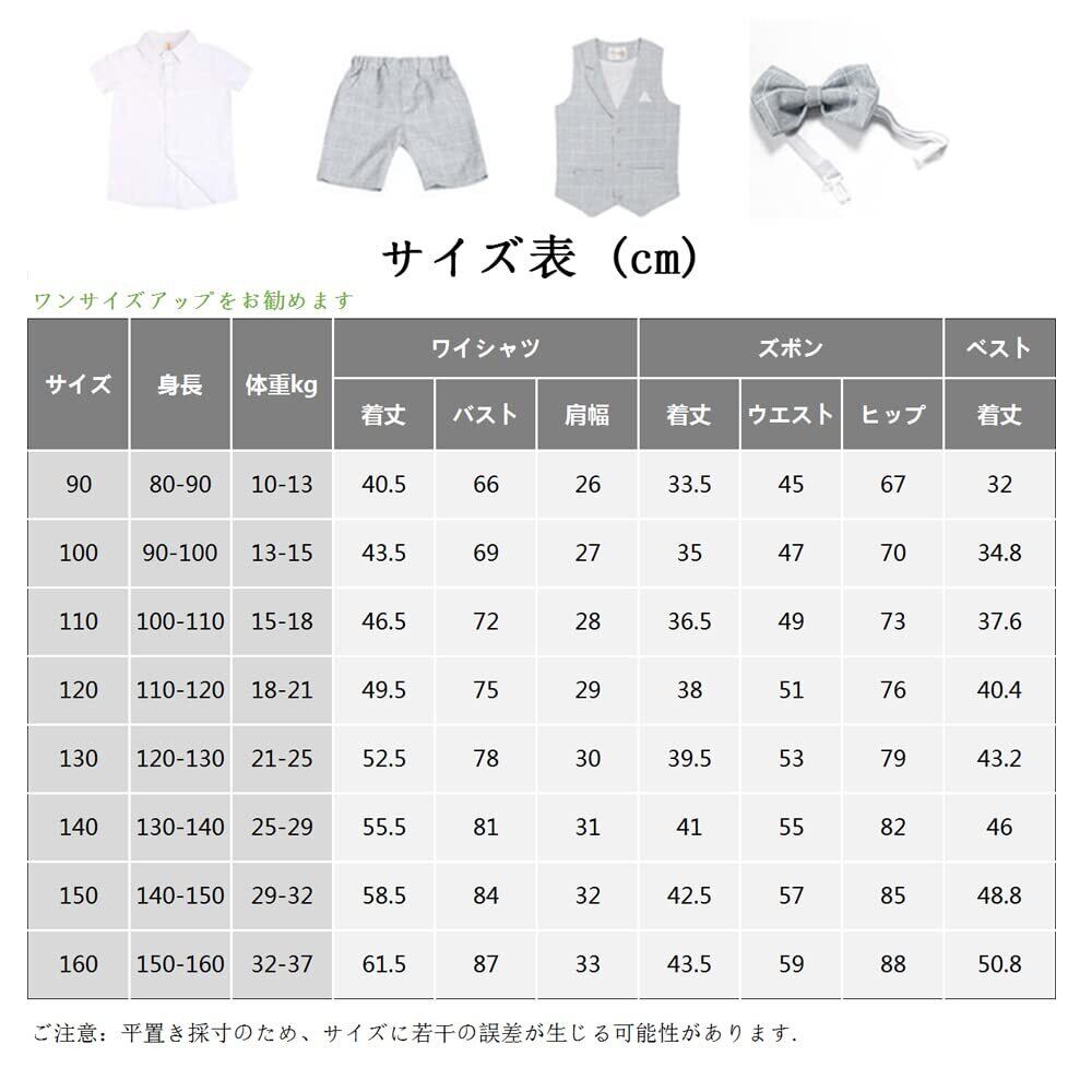 [LOLANTA] 子供 スーツ 男の子 フォーマル チェック柄 夏 半袖ワイシャツ 半ズボン ベスト 蝶ネクタイ グレー 結婚式 発表会 七五三 4点セット(90-160cm)