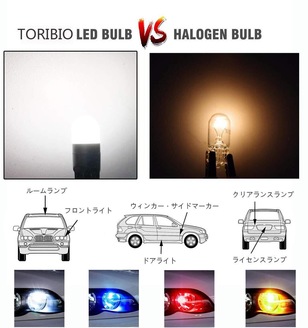 TORIBIO T10 LED 優しく明るい光拡散 高輝度 ポジションランプ ドームライト ウェッジ ルームライト ナンバー灯 ホワイト 白 無極性 DC12V専用 車用 4個