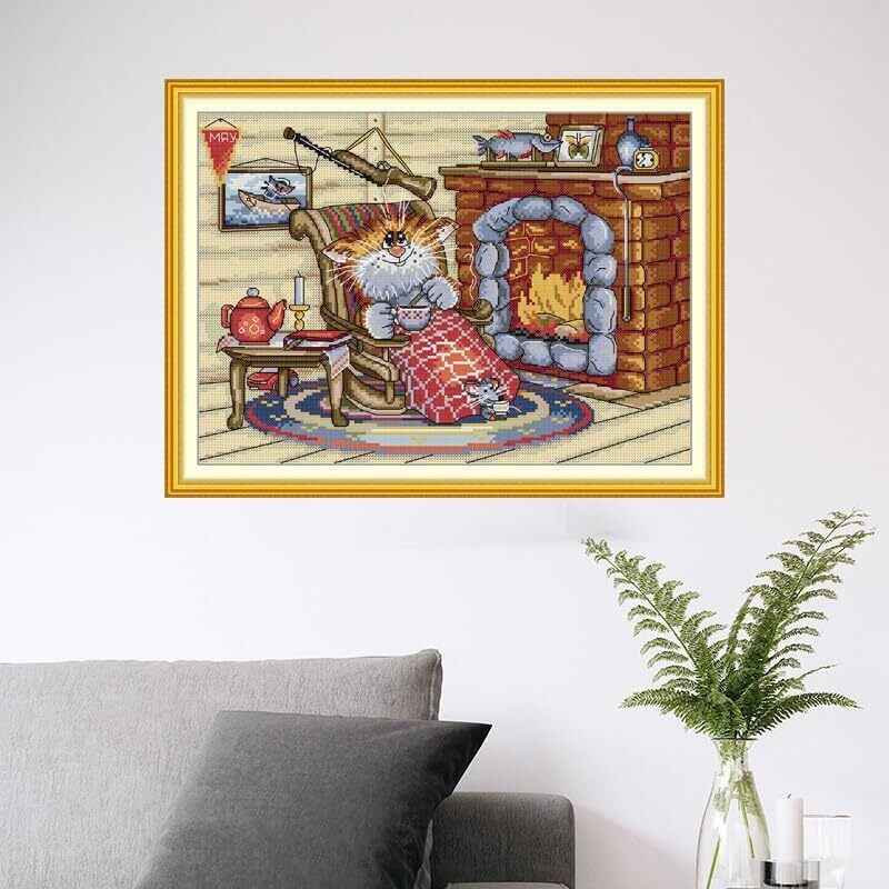 【特価セール】artcici プレプリント 猫 居心地の良い夜 クロスステッチキット 初心者用、11ct DIY 刺繍キット ソートスレッド付き スタンプパターン 針仕事用品 (50cmx38cm) | allstore5