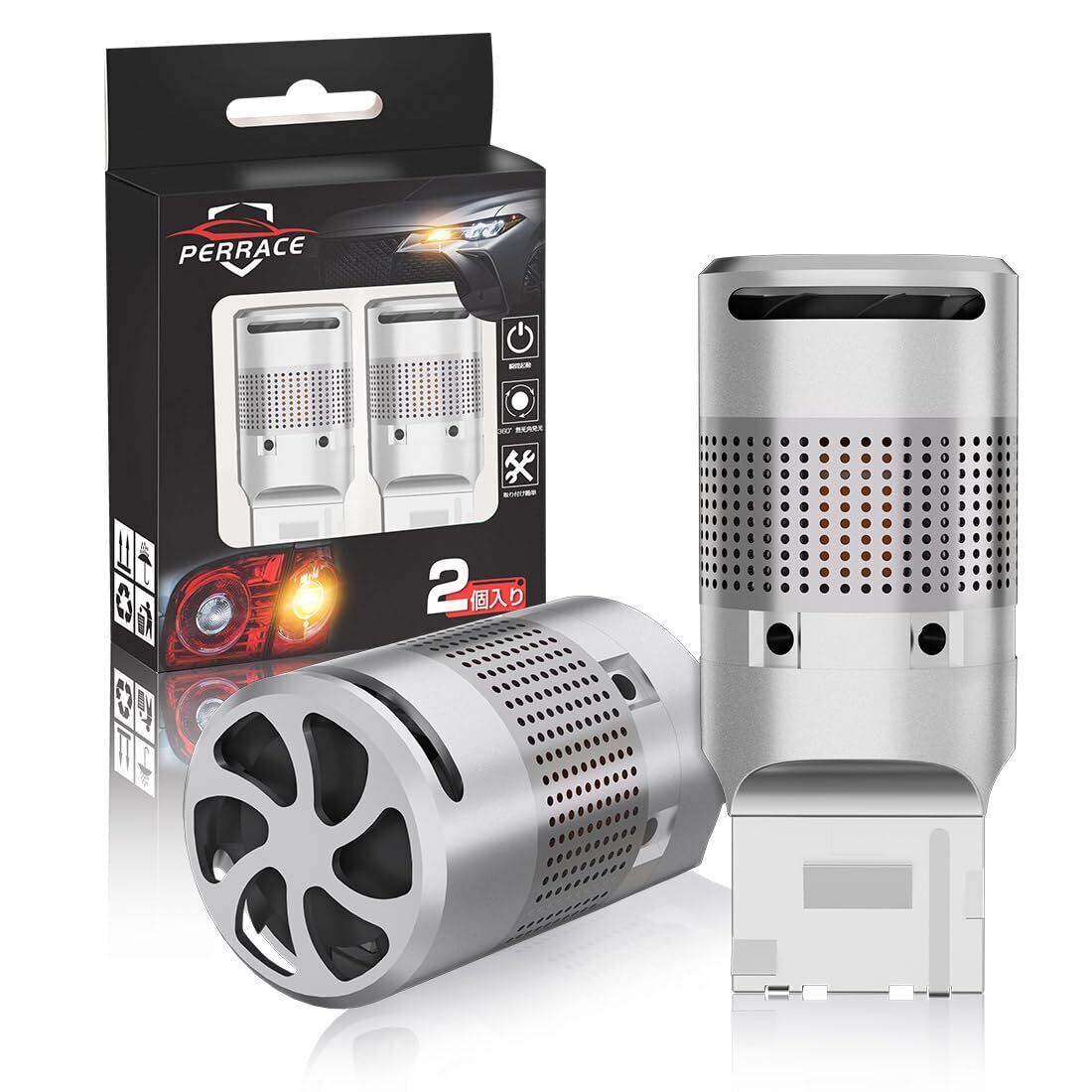 Perrace t20 ピンチ部違い led ウインカー バルブ 明るすぎない 1200LM ハイフラ防止 抵抗内蔵 キャンセラー内蔵 ステルス アンバー 無極性 DC12V 車検対応 冷却ファン搭載 ノイズ対策 2個入り