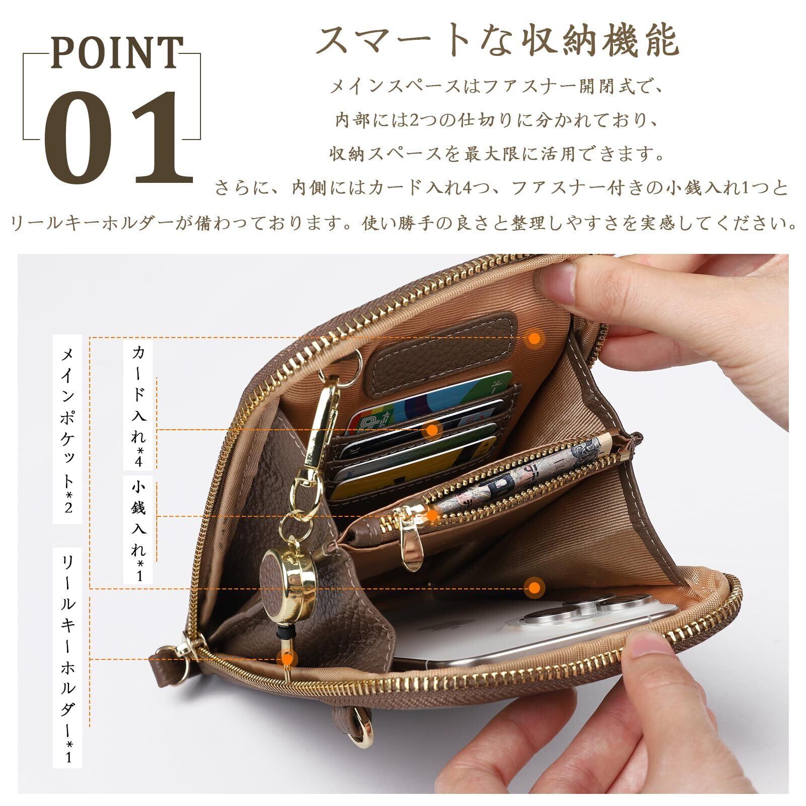[imeetu] スマホショルダー スマホポーチ レディース 本革 ミニショルダーバッグ 伸縮キーホルダー付き 軽量 多機能 シンプル カジュアル おしゃれ 斜め掛け 肩掛け