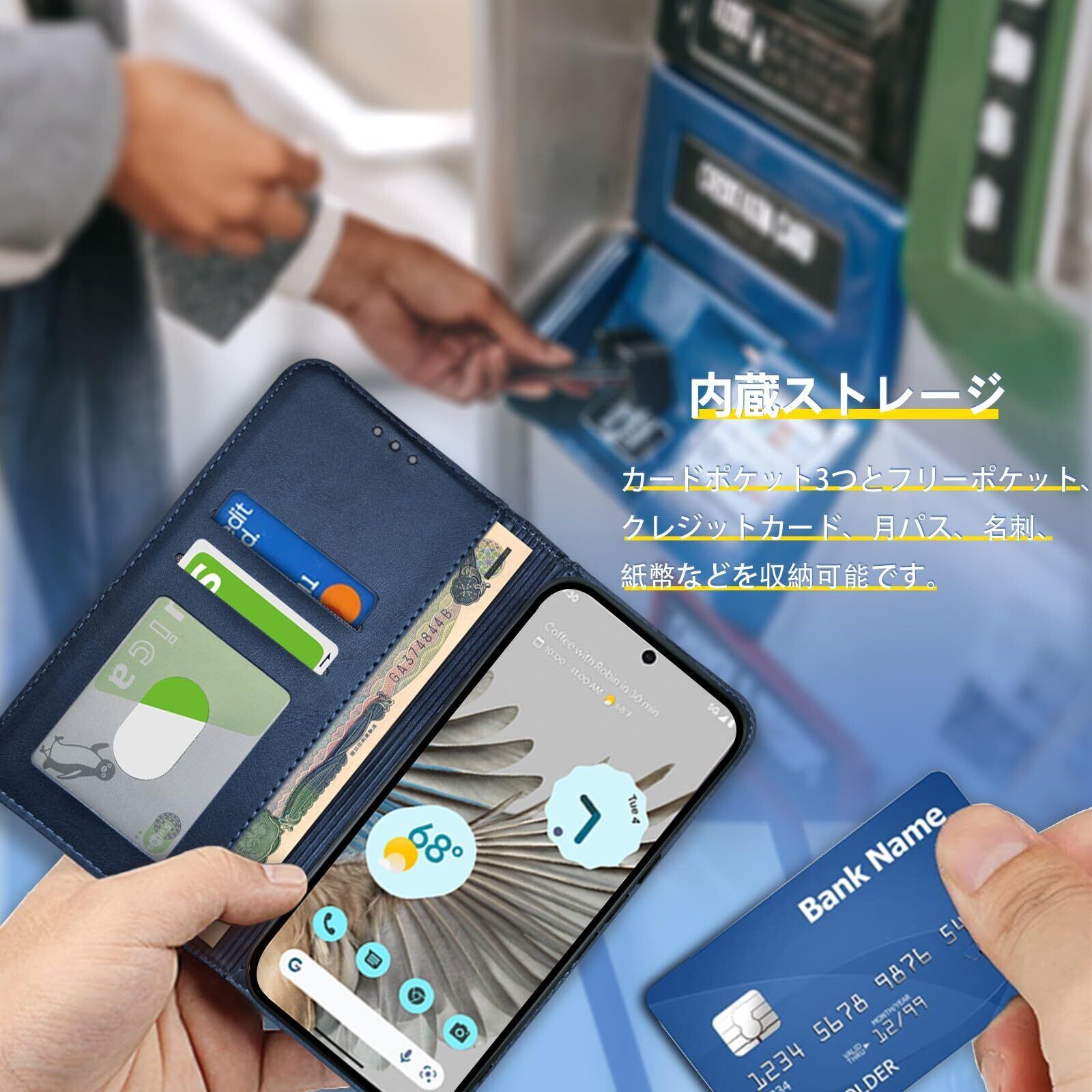 【おサイフ機能付き収納ケース】レザーケースにはカードスロットがあり、さまざまなクレジットカードやコインなど、日常的に使用するさまざまなカードを収納できます。