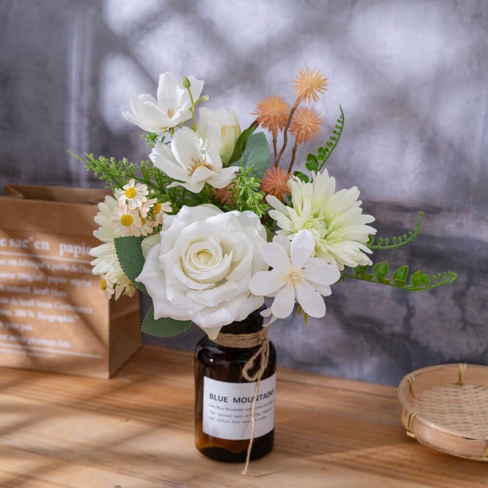 WillingYou 造花 ブーケ ウェディング フェイクフラワー 花束 手作り オシャレ 玄関 インテリア 撮影 小物 ハロウィン 母の日 ギフト バラ ガーベラ フェイクグリーン 1束 ホワイト