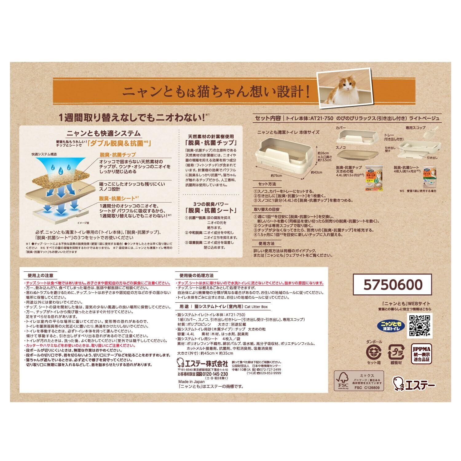 ニャンとも清潔トイレ 猫 トイレ 大型 本体セット [約1か月分 猫砂・シート付] のびのびリラックス ライトベージュ 複数飼育 大きめ ワイド 多頭 猫用 システムトイレ