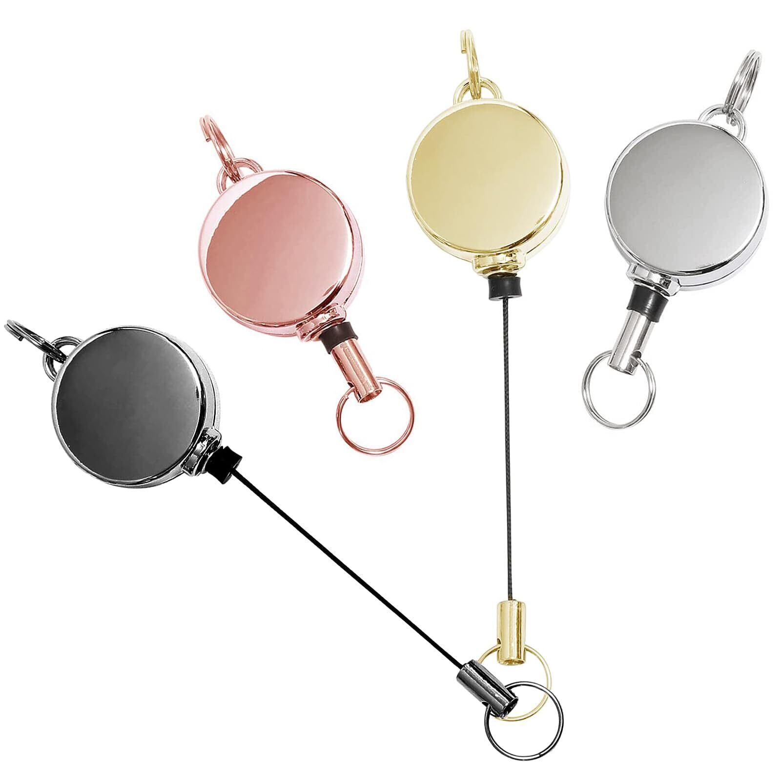 [サムコス] 4個セット リールキーホルダー 亜鉛合金 リールキー 伸縮自在 パスケース リール 金具 リールストラップ 吊り下げ名札用