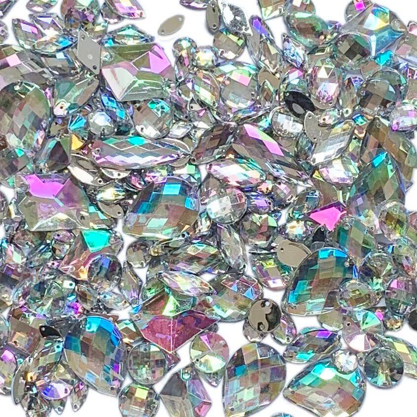 【特価商品】200個 ラインストーン 縫い付け 宝石 2穴 ソーイングラインストーン アクリル 衣類 シューズ バッグ DIY クラフト用 (ABカラー)