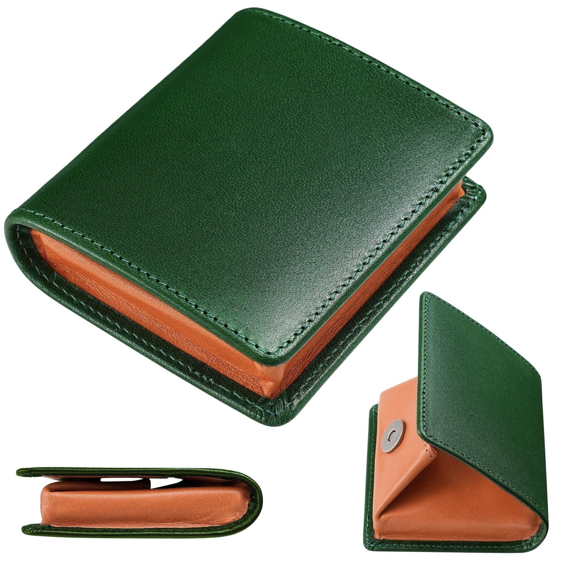 【数量限定】[ファブリツィオ] 小銭入れ メンズ コインケース 小さい 革 マグネット式 コンパクト 高級 イタリアン レザー 使いやすい ボックス型 小銭ケース(グリーン)