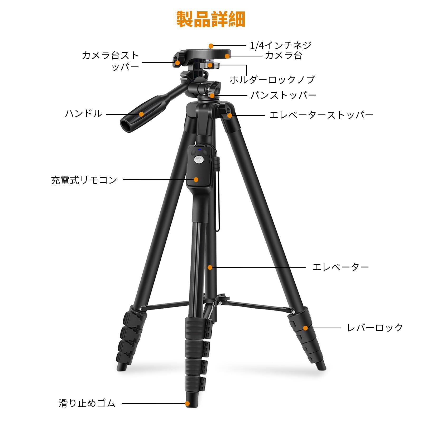 【在庫処分】XXZU 170cm 三脚 スマホ 三脚 カメラ 三脚 遠隔撮影リモコン 収納袋 付き 6段階伸縮 3WAY雲台 さんきゃく スタンド ビデオカメラ 一眼レフ スマートフォン 等に対応