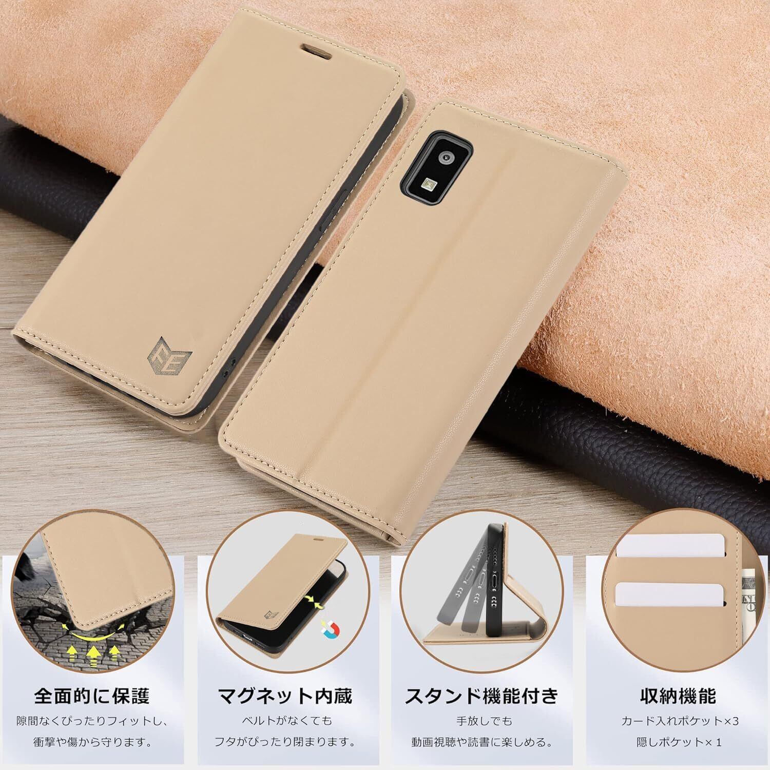 【数量限定】FeeY AQUOS Wish3 手帳型 ケース aquos wish3 ケース 手帳型 ウィッシュ3 手帳 SH-53D A302SH SH-M25 財布型 スマホケース カード収納 横置きスタンド機能 TPU素材 衝撃吸収 全面保護, アプリコット