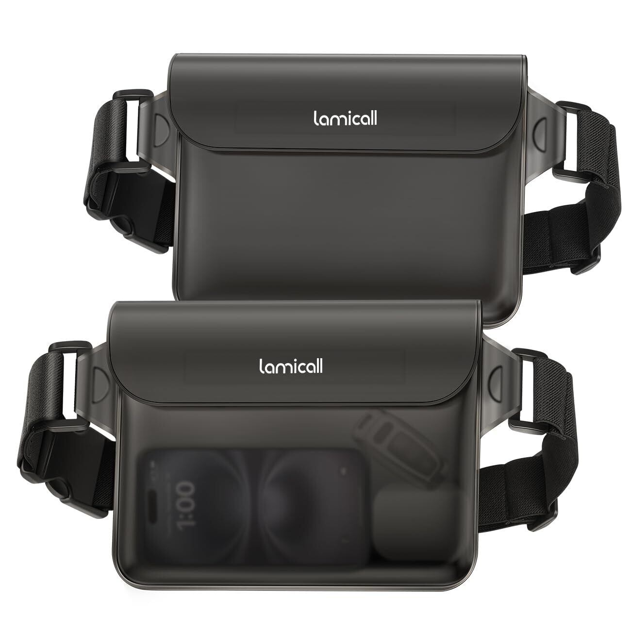 【業界初・二重マジックテープ】 防水 ポーチ 2個セット 雨の日 海 プール Lamicall : IPX8 小物入れ 調整可能 スマホ 防水ケース 斜め掛け ぼうすい 収納 バッグ 肩かけ すまほ アイフォン 携帯 けいたい 大容量 海水浴 釣り iPhone 16e 16 15 14 plus pro promax 13 mini 12 se Xperia android に対応 クリアグレイ