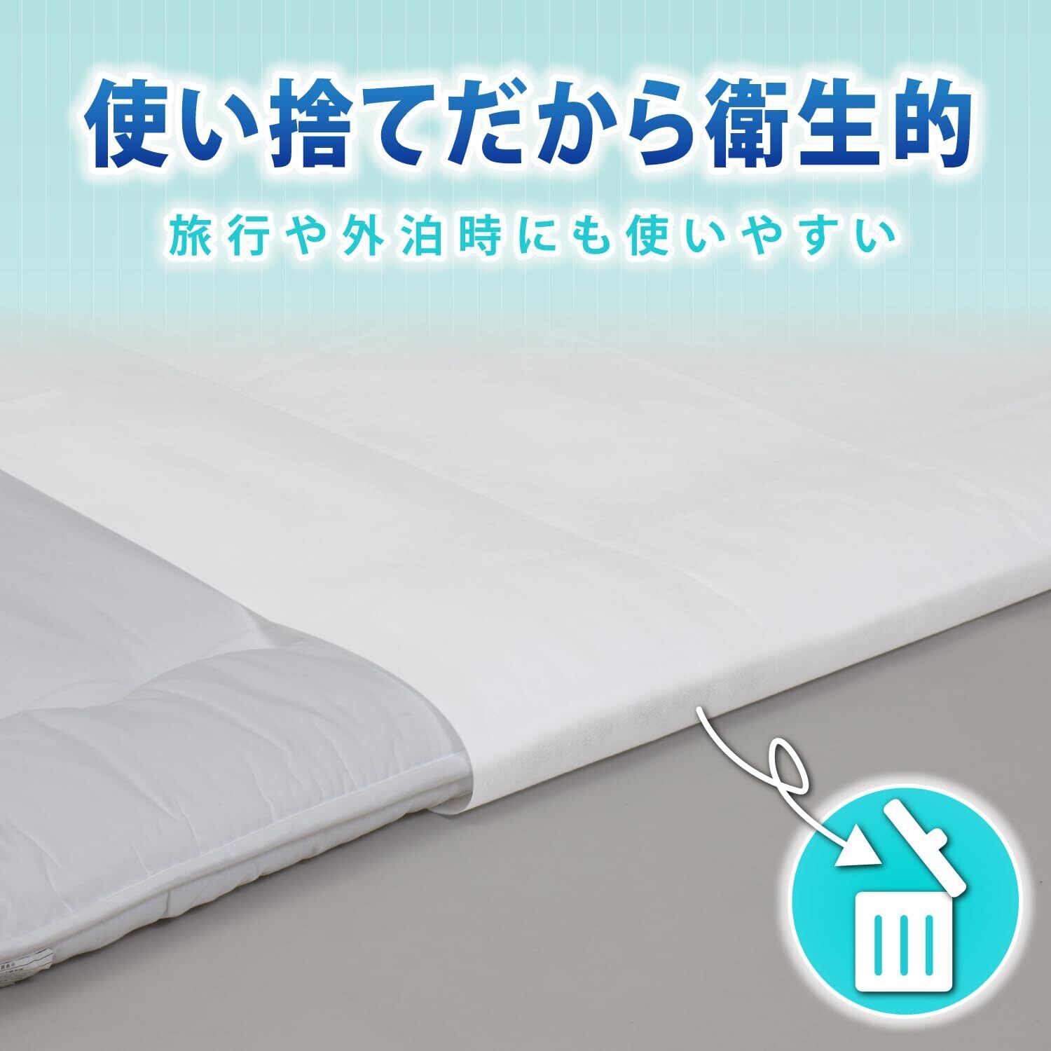 【使い捨てなので衛生的・カット可能】:使い捨てなので衛生的。折りたためるので旅行時などの携帯にも便利。ハサミでお好きなサイズにカットも可能。ベッドや布団以外でも使える。