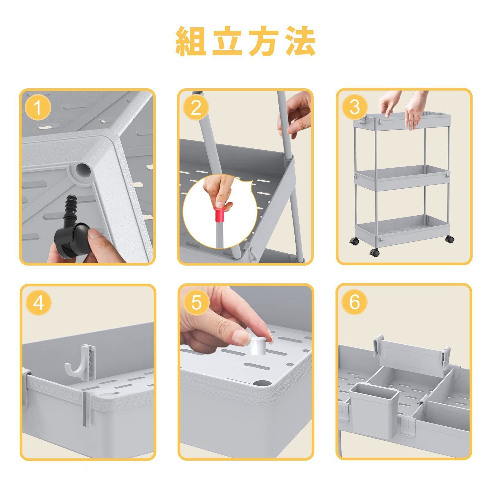 【組み立て簡単】このキッチンワゴンは組み立て簡単、女性一人でも組み立てられます。説明書に組み立て図解もあります。