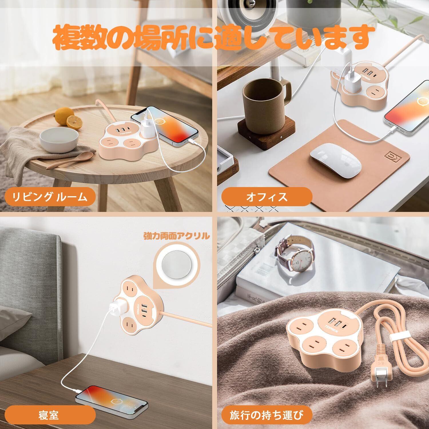 【使い勝手】180°回転プラグで快適な使用環境を実現、ソファや壁などの狭い場所でも使いやすい、付属の強力両面アクリルで電源タップも設置可能壁やテーブルの底、非常に安定していて便利です!