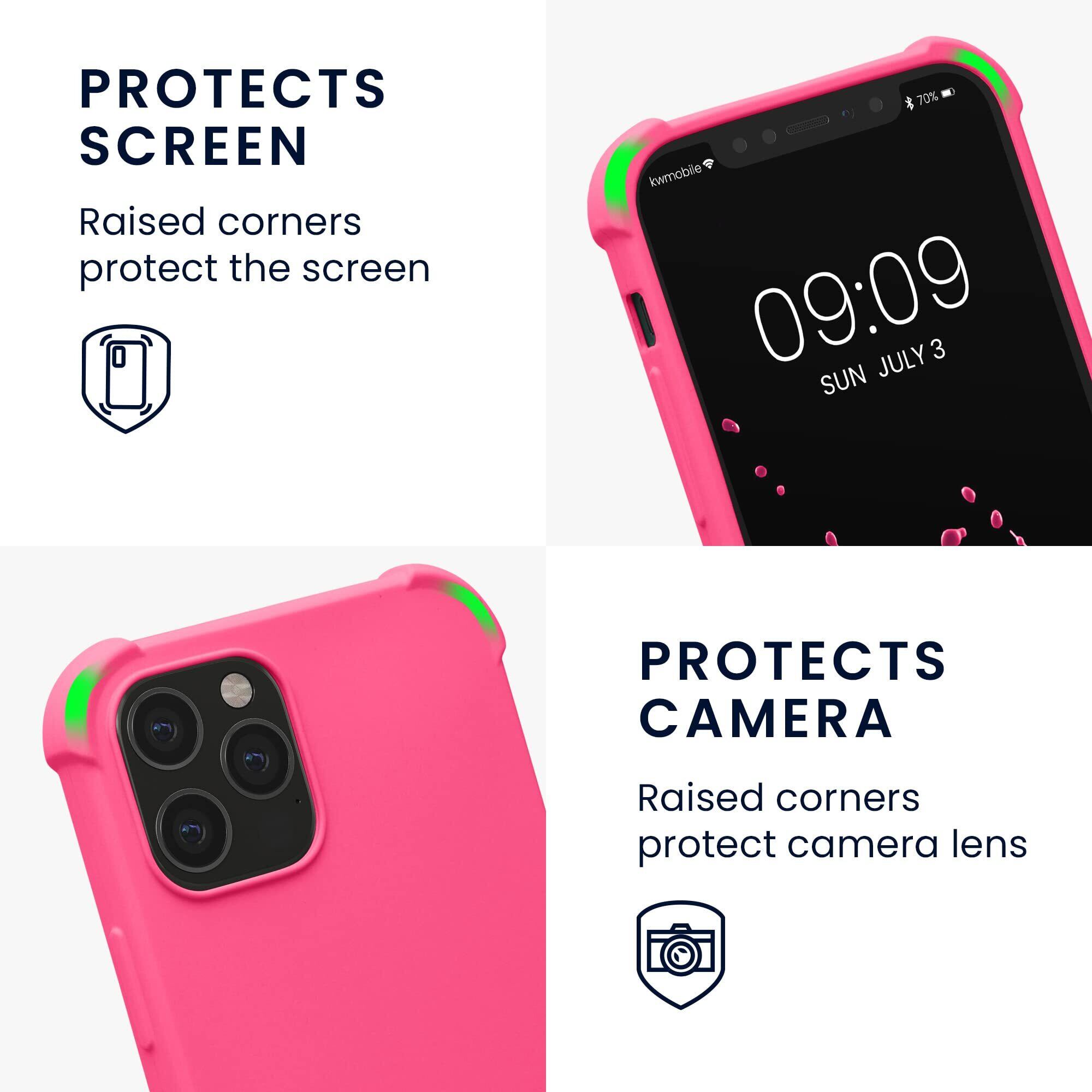 【在庫セール】kwmobile スマホショルダー Apple iPhone 12 / iPhone 12 Pro対応 ケース - TPU カバー 肩掛け ストラップ付き ネオンピンク