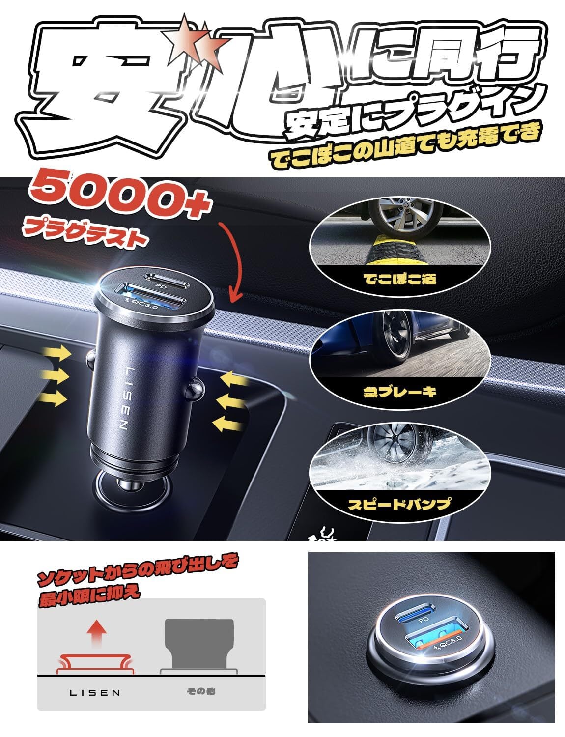 【持続可能で信頼できるデザイン】LISENは、耐久性のある長持ちする製品を提供しながら、環境保護を優先しています。LISEN 車 充電器 は、頻繁な交換の必要性を減らし、iPhone16 15 や Pixel 8 9a Aquos Wish4 Sense9の車充電器ポートを探している人のための持続可能な選択肢になります。シガープラグ金メッキ加工で接触不良防止、主要ソケットサイズを刻印したマルチ車種12V/24V対応設計で、車種変更後も継続利用可能。3年付き、専属カスタマーサポート(平均対応時間30分の実績)