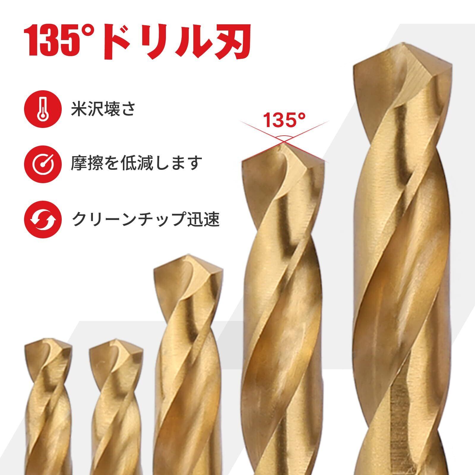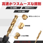 チタンコーティング - チタンコーティングを施した高速度鋼から作られた金属ドリルビットは、優れた耐久性、切れ味、耐食性、低温での動作を提供し、コーティングされていない通常のビットよりも3倍長持ちします