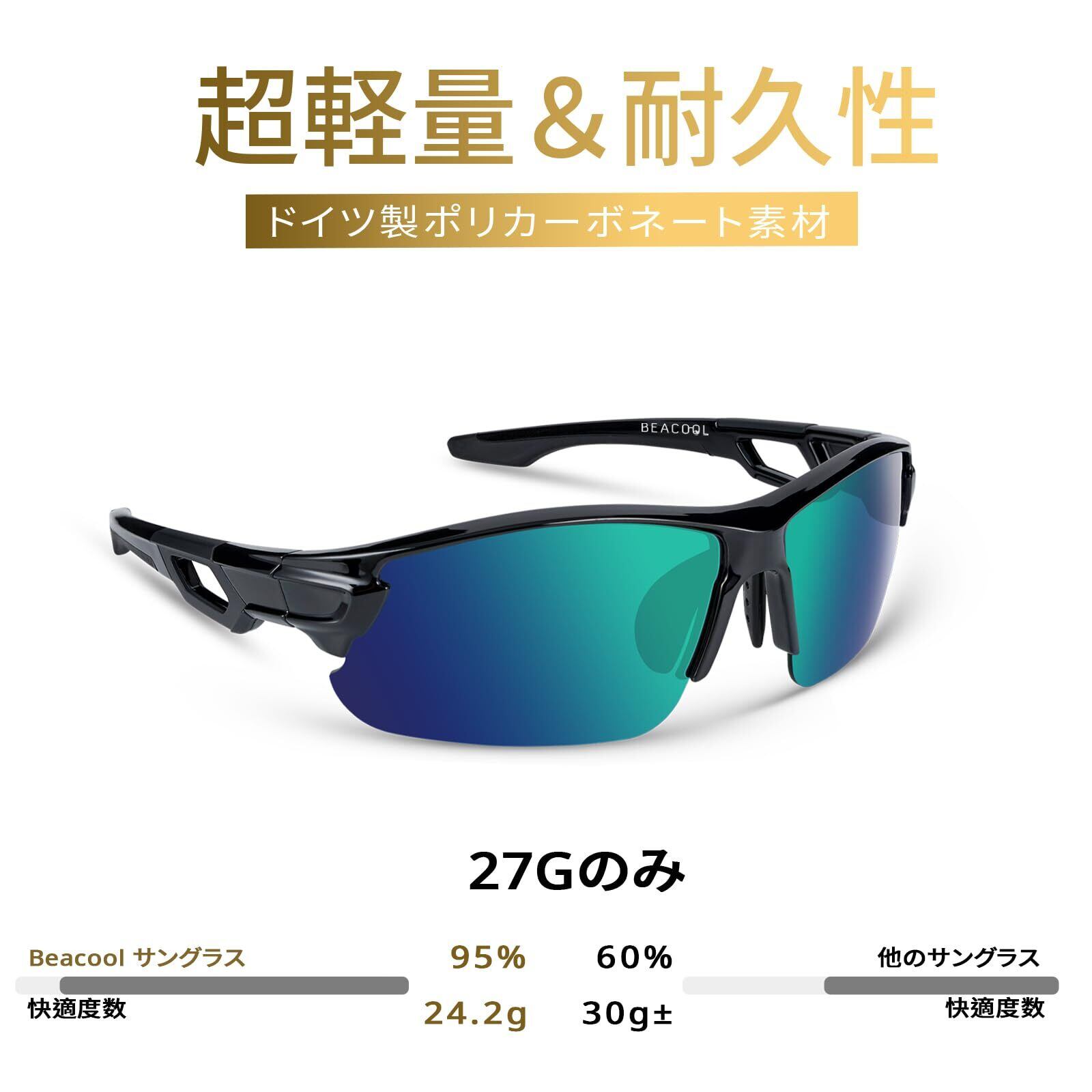 [BEACOOL] スポーツサングラス 偏光レンズ 野球 自転車 釣り ランニング 登山 ゴルフ ドライブ バイク テニス スキー メンズ レディース 超軽量 TR90 TAC UV400 紫外線防止 ユニセックス サングラス 安全 清晰