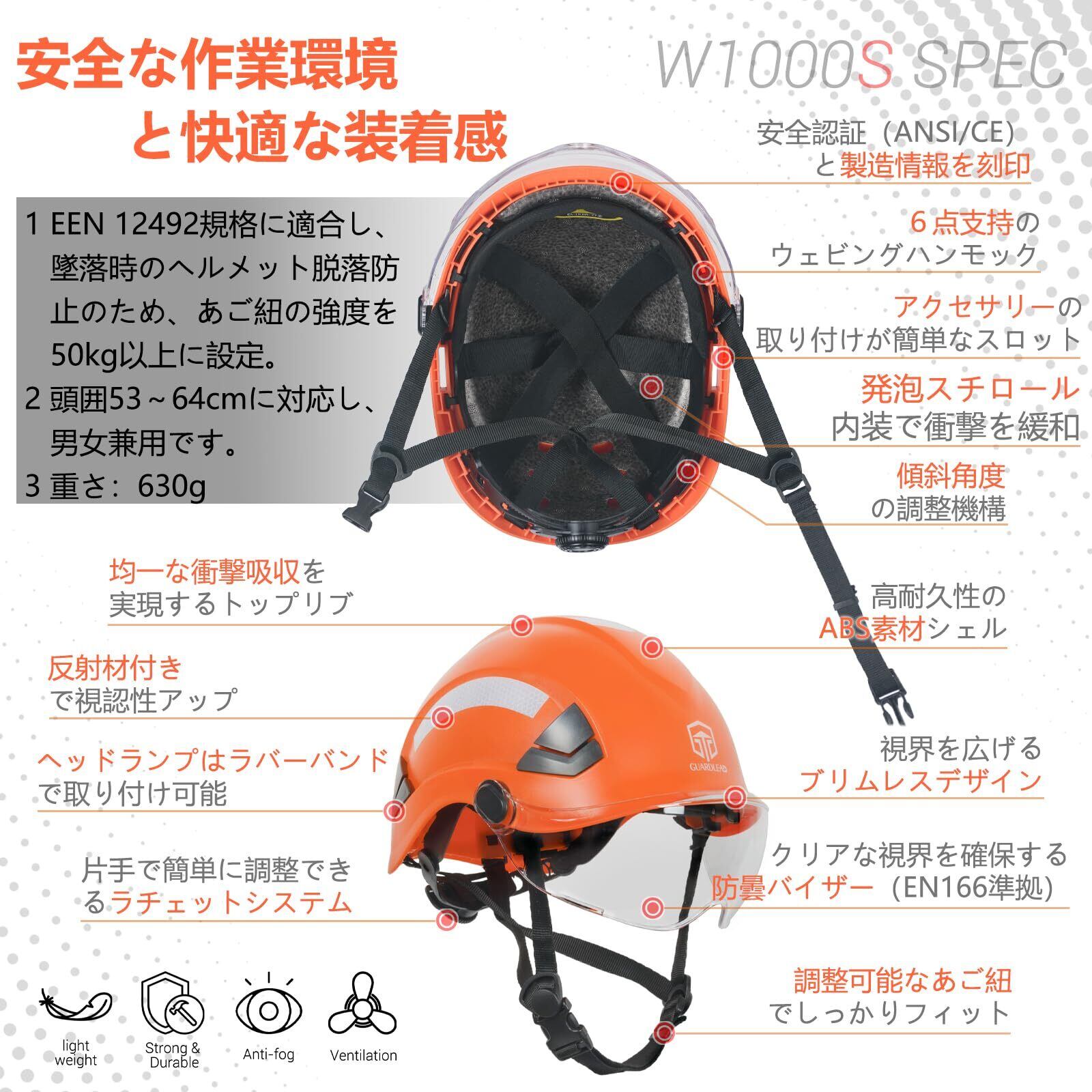 GUARDLEAD 作業用ヘルメット シールド付き 工事用 発泡スチロール 内装 通気孔付き かっこいい EN12492基準適合 頭囲53~64cm 男女兼用 高所 狭所 登山山岳 (墜落時保護用)