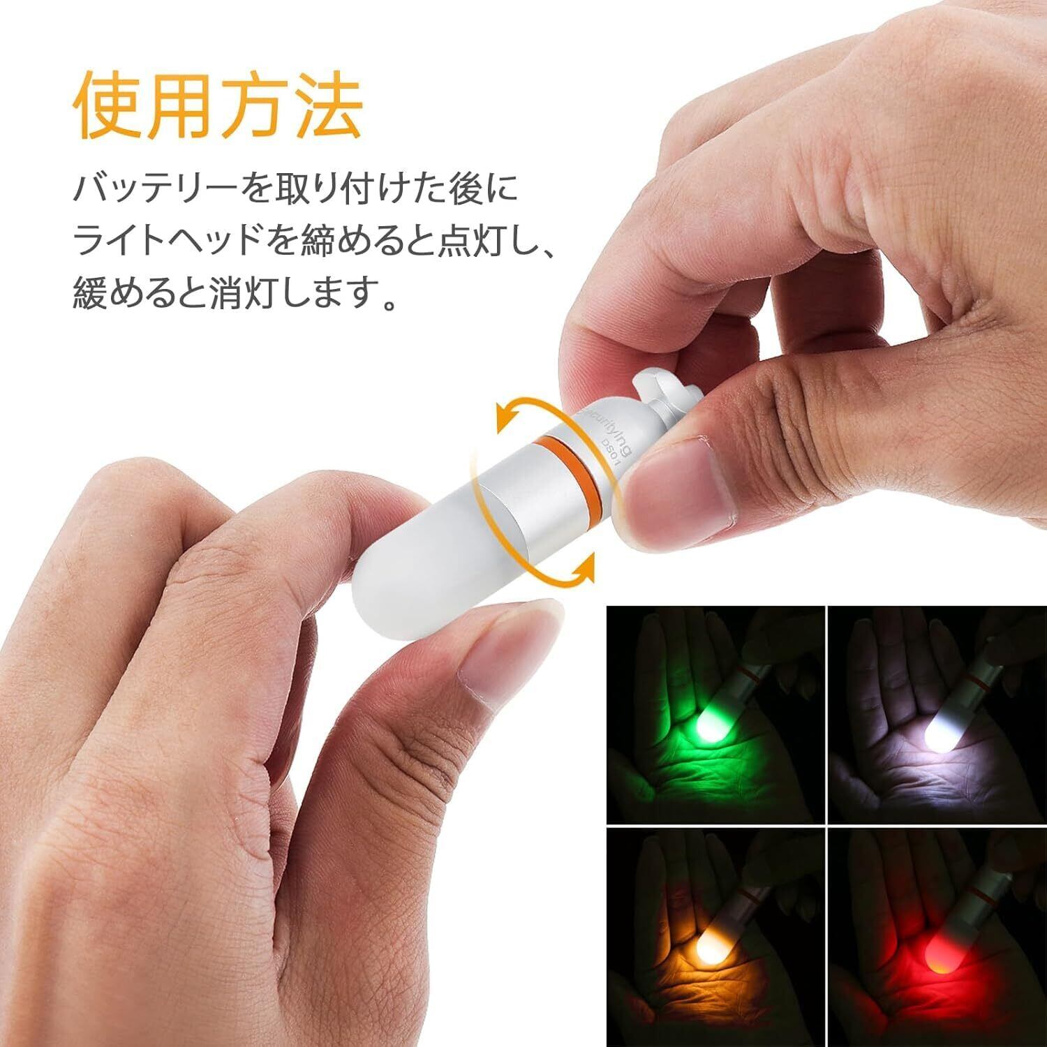 【操作簡単】SD01 ダイブビーコンの頭部には回転スイッチがあり、潜水手袋をしていても操作しやすい。頭部を締めるとランプが点灯し、ひねるとランプがOFFになる。
