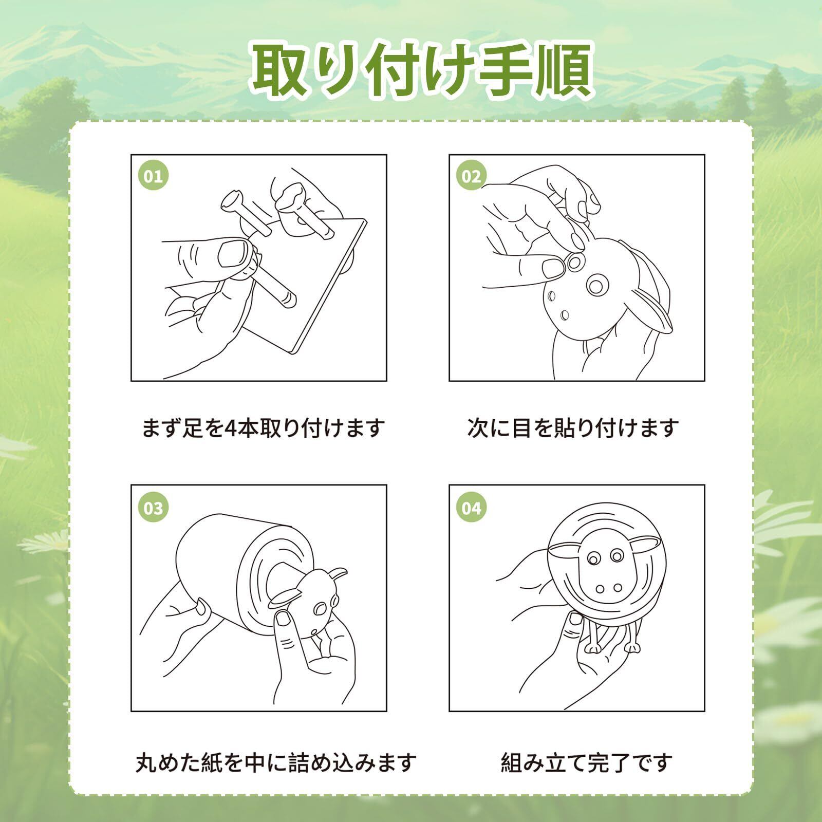 【簡単組み立て&エコ素材】当社のトイレットペーパーホルダーは、高品質な再生プラスチックを使用したエコフレンドリーな製品です。羊の頭と体をはめ込むだけのシンプルな構造で、説明書なしでもすぐに組み立てられます。トイレはもちろん、リビングやキッチンなど、お部屋のどこにでも自由に設置でき、ナチュラルなインテリアとしてもお楽しみいただけます。