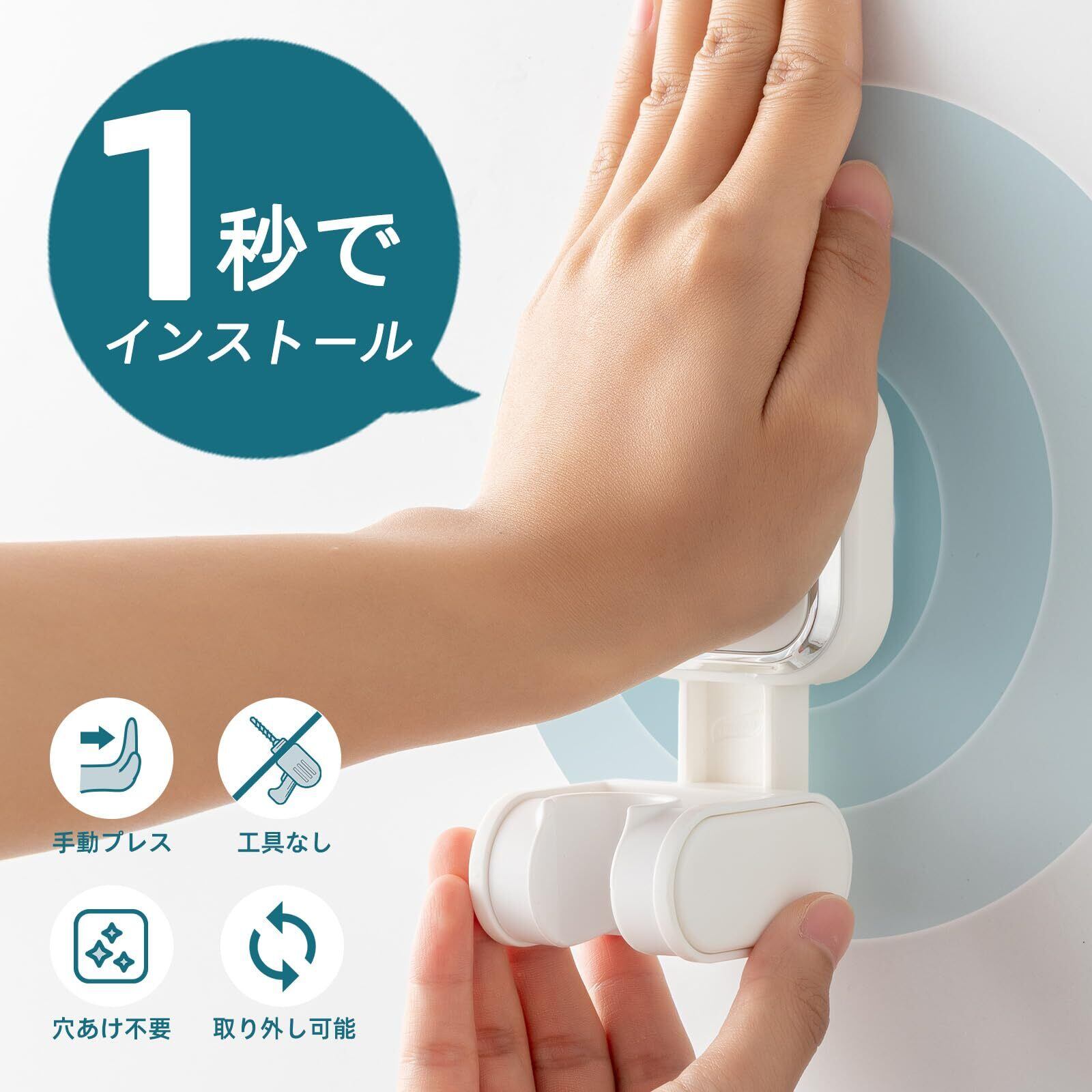 取り付けが簡単&再利用可能:吸引力調整可能なシャワーヘッドホルダーは1秒以内に取り付けることができます。ネジ、釘、接着剤、工具は必要なく、壁を傷つけません。 使いやすくて何度も再利用でき、跡を残さず簡単に剥がすことができます。防水性、安定性、耐高温性があり、濡れても滑ったり落ちたりしません。吸盤は簡単に取り外して水洗いでき、繰り返しご使用いただけます