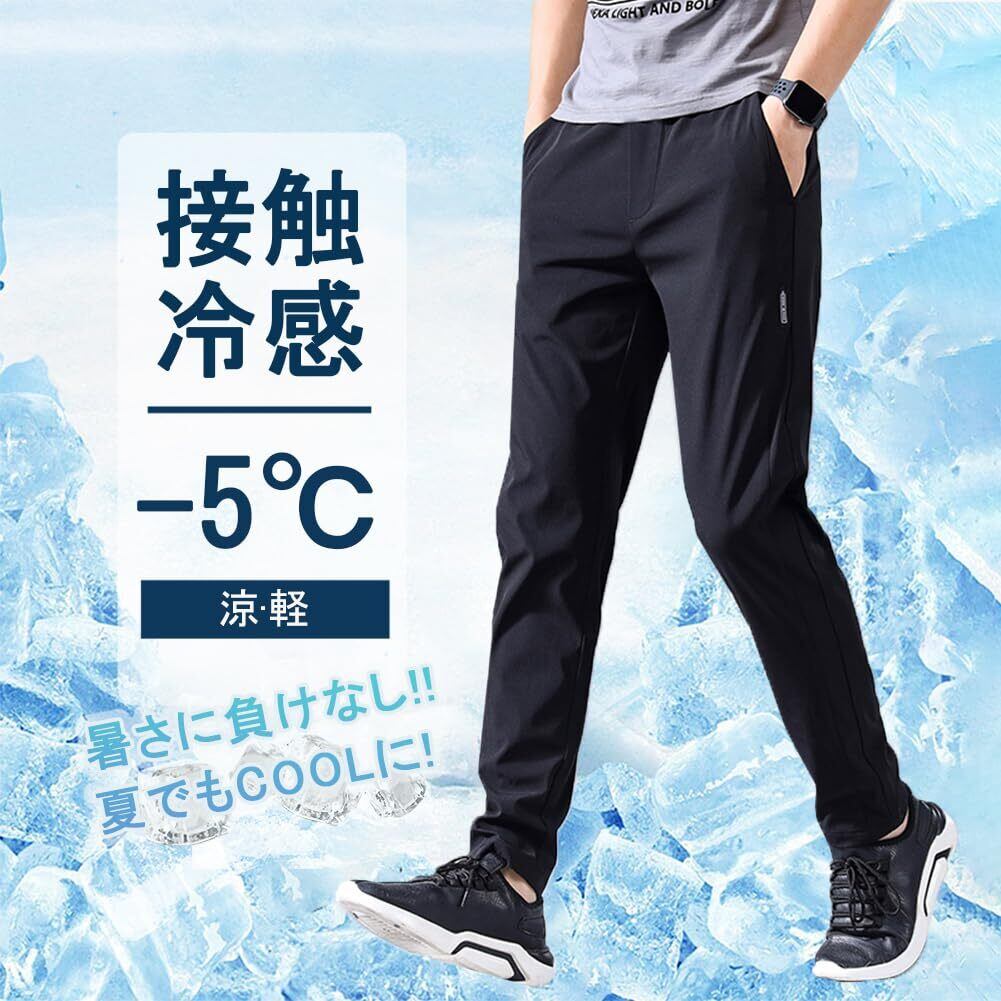 【接触冷感】冷感生地を採用して、肌と接触した瞬間に温度を下げるクール感があり、夏の常識を覆す!夏の蒸れに対応する男性用ジョガーパンツ。