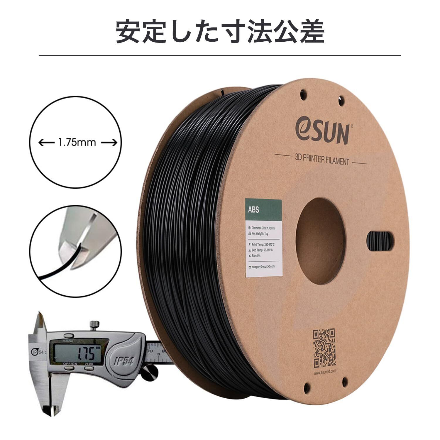 eSUN ABS 3Dプリンターフィラメント ABS 寸法精度+/-0.05mm、1.75mm径 3Dプリンター用 正味量1KG (2.2LBS) スプール造形材料ABS材料 (黒)
