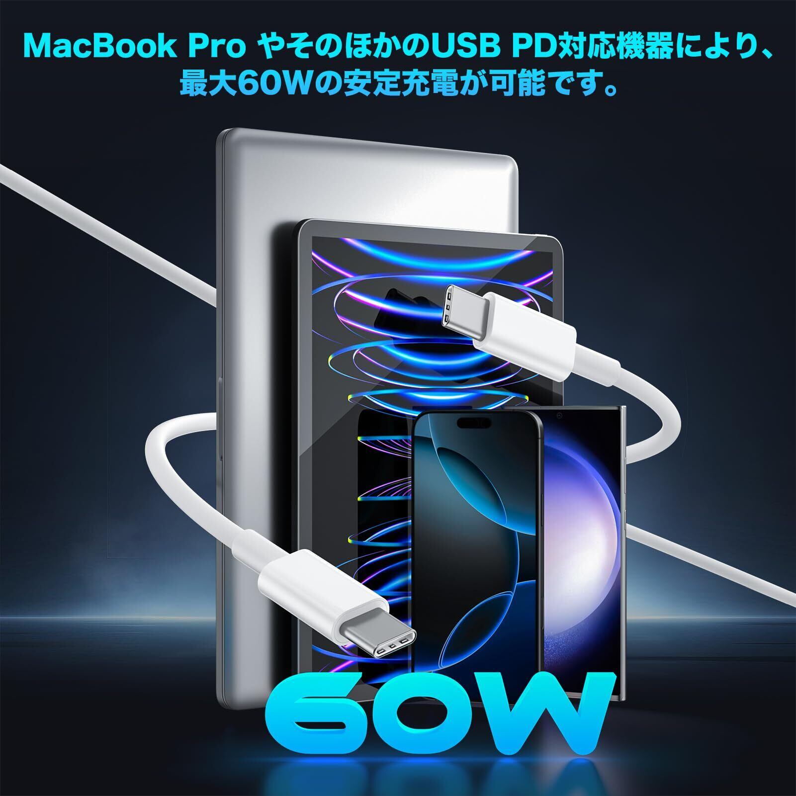 USB C ケーブル タイプc 1M/2M 各2本 PD対応 60W超急速充電 断線防止 高速データ転送 Type-C to Type-Cケーブル for iPhone 16/15 Pro/Plus/Pro Max MacBook iPad Galaxy Sony Google Pixel 7a等USB-C各種対応