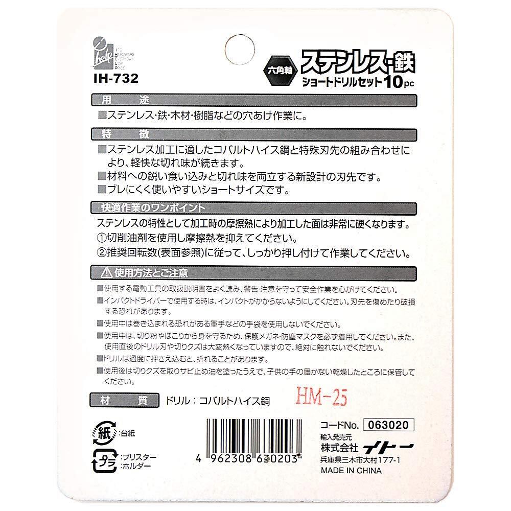iHelp(アイヘルプ) 六角軸 ステンレス・鉄用 ショートドリル 10本セット アソート 鉄工ドリル 鉄工用ドリル ステンレスドリル ステンレス用ドリル IH-732