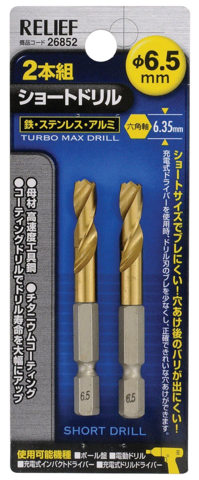 イチネンアクセス ツール事業部 イチネンアクセス RELIEF(リリーフ) 鉄工ドリル 2本組 六角軸ショートドリル 6.5mm 26852 鉄工用 チタンコーティング