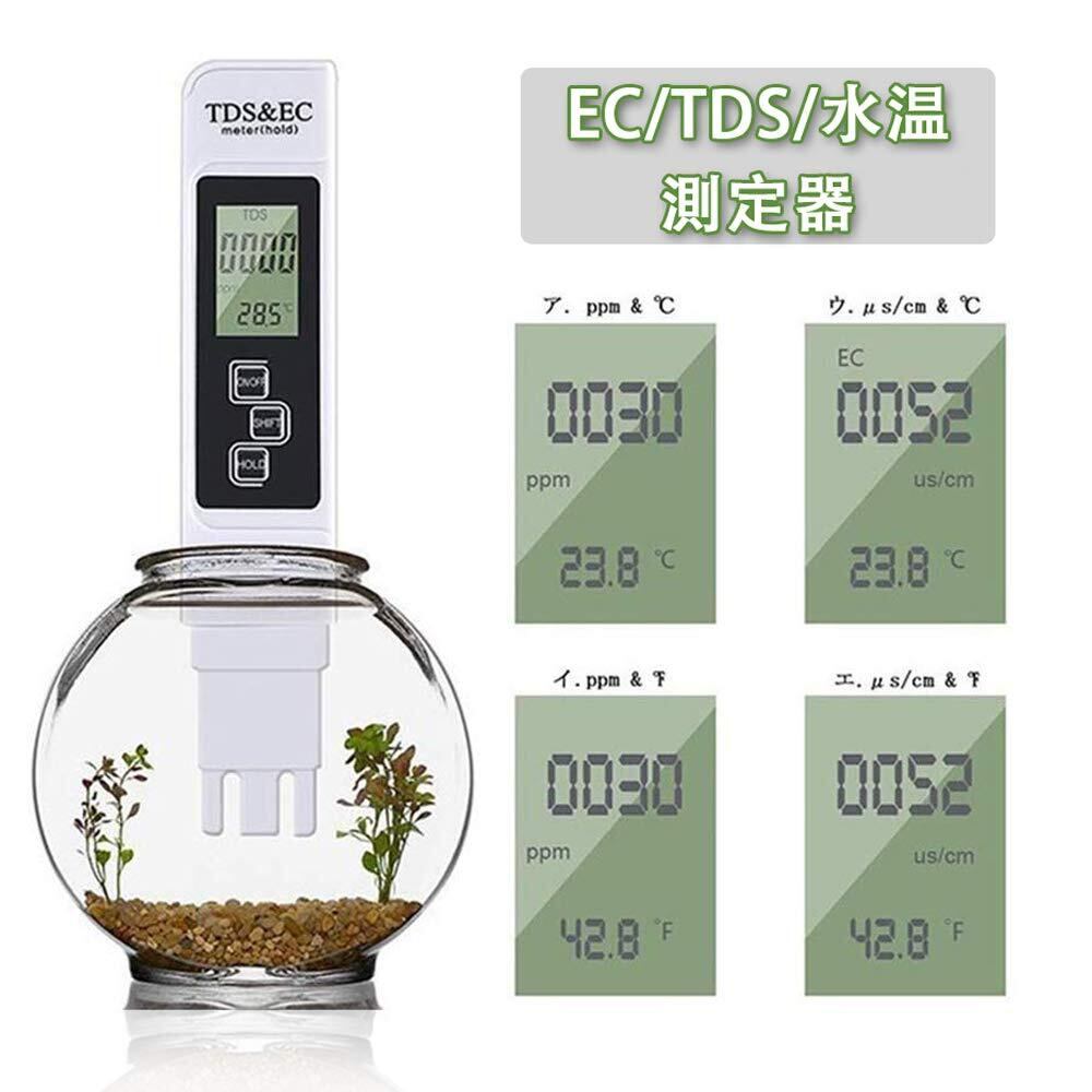 DiyStudio デジタルTDSメーター ec メーター、3-in-1 TDS&EC&温度計水質テスター1%高精度0-9999ppm、ホールド機能/LEDライト/キャリングケース、水質測定器水族館、水耕栽培、スイミングプール、農業、温泉に最適な水温 TEMP PPM検査メーター反浸透 測定温度補償機能 導電率検出 など対応 (白)