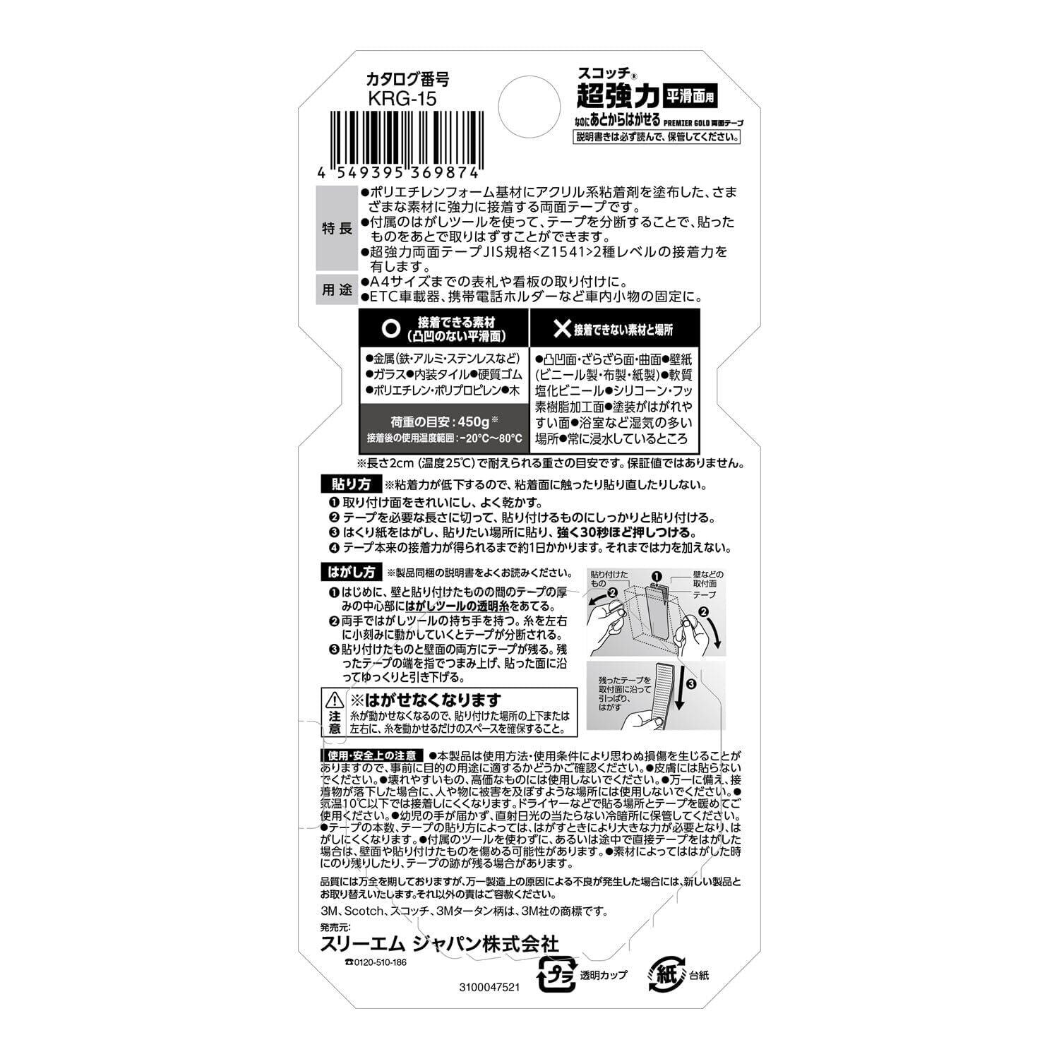 【2022最新】3M 両面テープ 超強力 なのに あとから はがせる 平滑面用 幅15mm 長さ1m スコッチ KRG-15 小巻 プレミアゴールド
