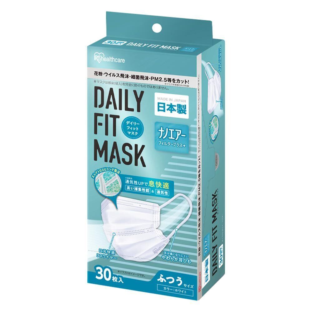 アイリスオーヤマ(IRIS OHYAMA) ナノエアーマスク ふつうサイズ 30枚入 日本製 不織布マスク 涼しい 通気性UP 蒸れにくい 息快適 耳が痛くならない PK-DNI30L ホワイト 白