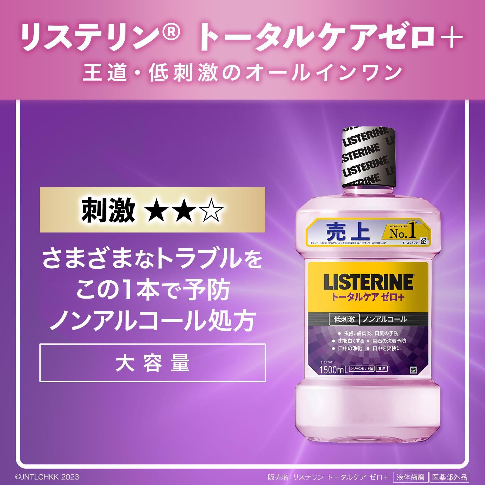 【2022最新】【大容量】 LISTERINE(リステリン) トータルケアゼロプラスマウスウォッシュ 液体歯磨 低刺激 原因菌殺菌 ノンアルコール 1500ml お徳用 医薬部外品 薬用 クリーンミント味