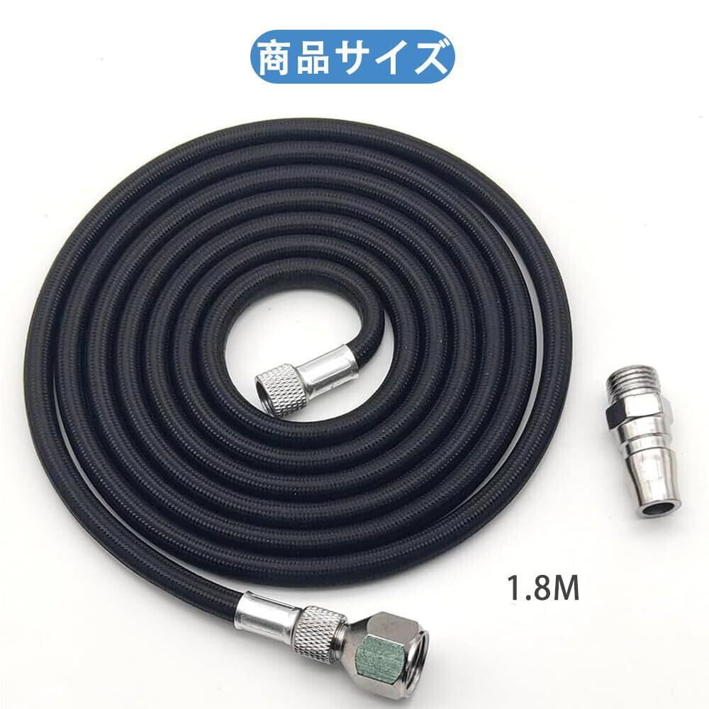 DFsucces エアブラシホース 1.8M ナイロン編組 ジョイント付き 標準 1/8インチ 1/4インチサイズのフィッティング付き 接続用ホース エアブラシ エアコンプレッサー接続用 (ブラック*1.8m)