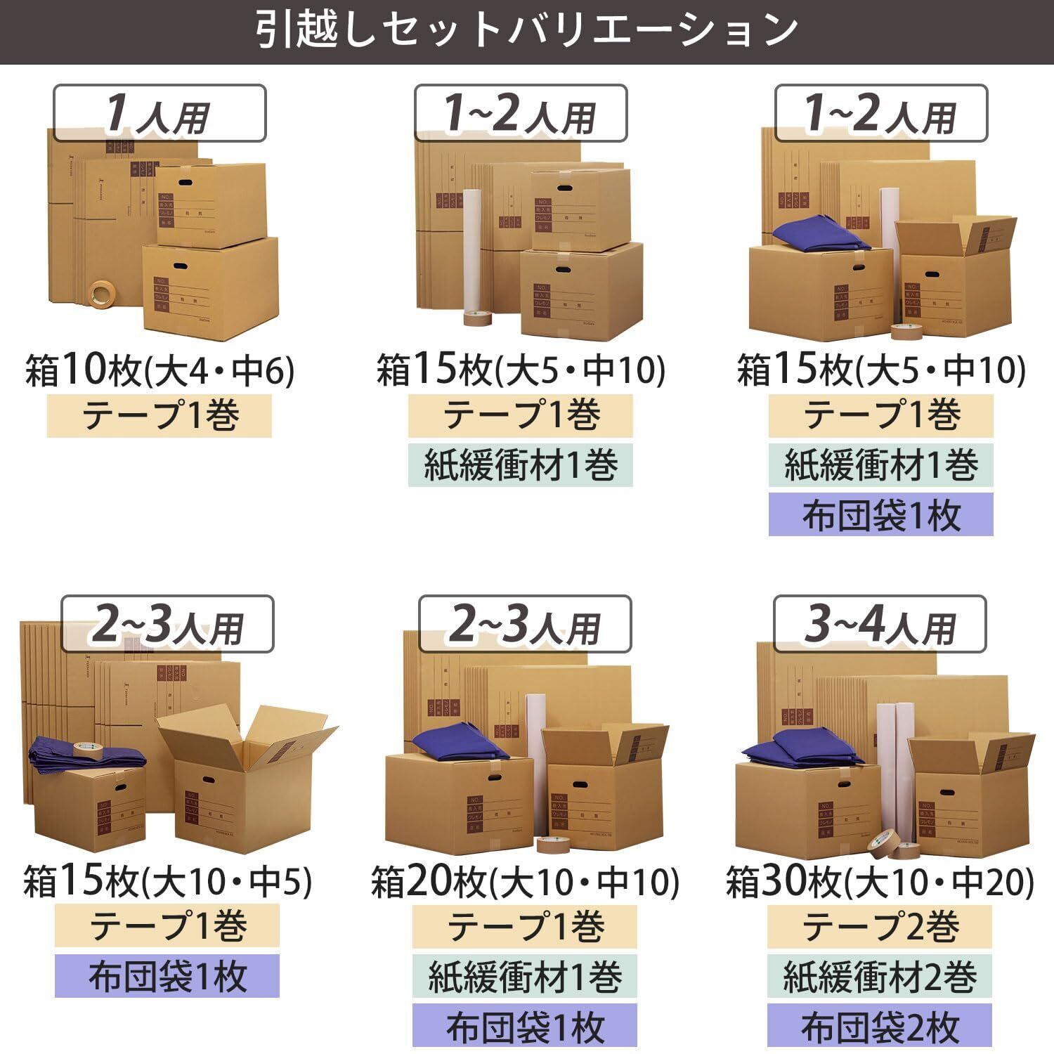 「ボックスバンクⓇ」ブランド商品。1~2名様の引越しに必須のセット。ボーガスペーパー付!届いてすぐに荷造りができます。