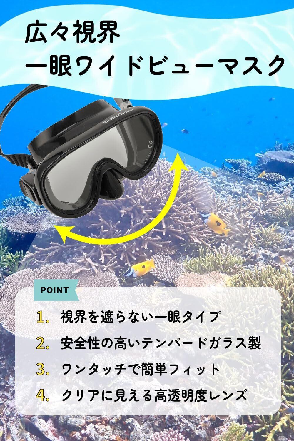 視界を遮るものがない1眼タイプのシュノーケリングマスク。海に浮いた状態で水中観察をするシュノーケリングでは顔を動かせる範囲も限られるので、可動範囲が狭くても広い範囲を見渡せる1眼広視界タイプがおすすめです! また、1眼タイプのシュノーケリングマスクは光を取り込める量も多いので、明るい視界でシュノーケリングをお楽しみいただけます。シュノーケリングマスクで気になることに水の侵入があると思います。REEFTOURER(リーフツアラー)のシュノーケリングマスクではマスク内への水の侵入を徹底的に防ぐためにマスクスカート部分をダブルスカート構造としています。シュノーケリングマスクのスカート部分(顔に当たる部分)を2面(ダブル)にすることで、顔とシュノーケリングマスクの接地面が広がり、面でフィットし、隙間が作られずらくなるためマスクへの水の侵入を防ぐことができるのです。シュノーケリングマスク内に水が入ってこないか心配…そんな方はダブルスカート構造のシュノーケリングマスクを選んでもらえると快適にシュノーケリングを楽しめると思います!